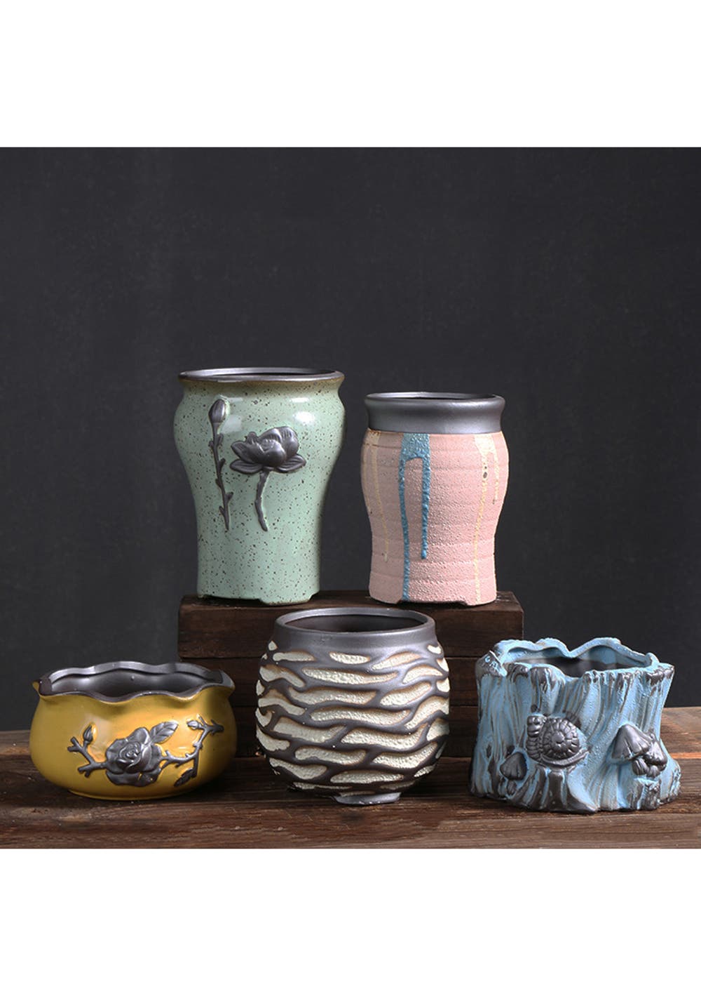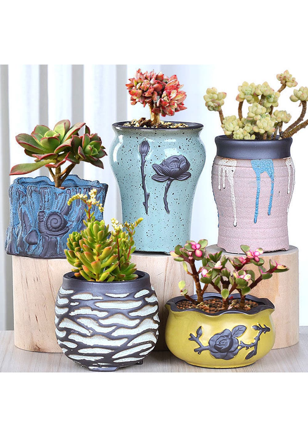 5 cute pots with different shape and paintings, bright and eye-catching. The pots are made from durable ceramic baked at a high temperatures to ensure that color will not fade over time.
