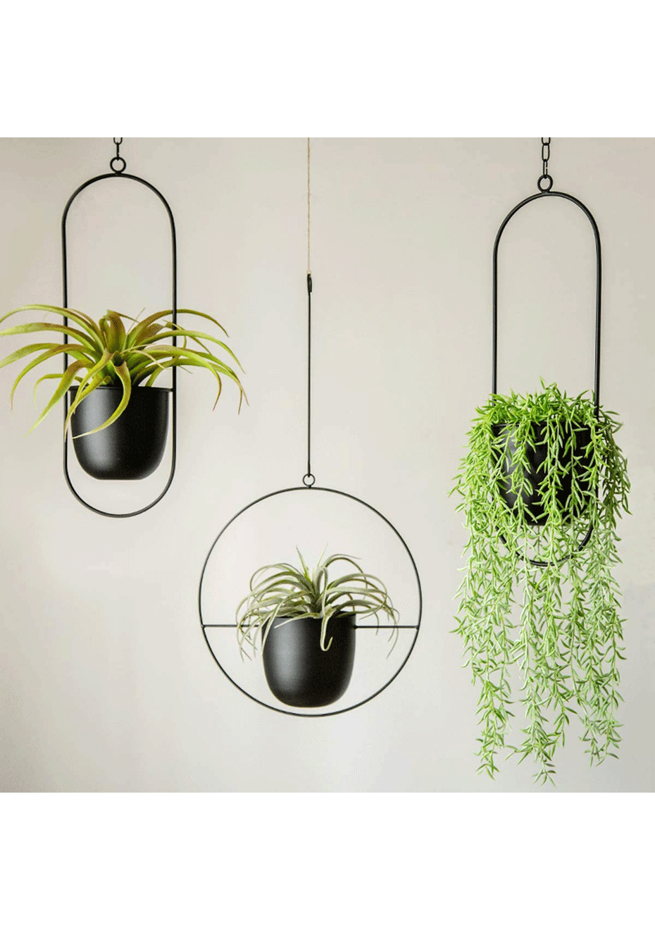 Minimalist Metal Plant Hanger Oval Shape-Black