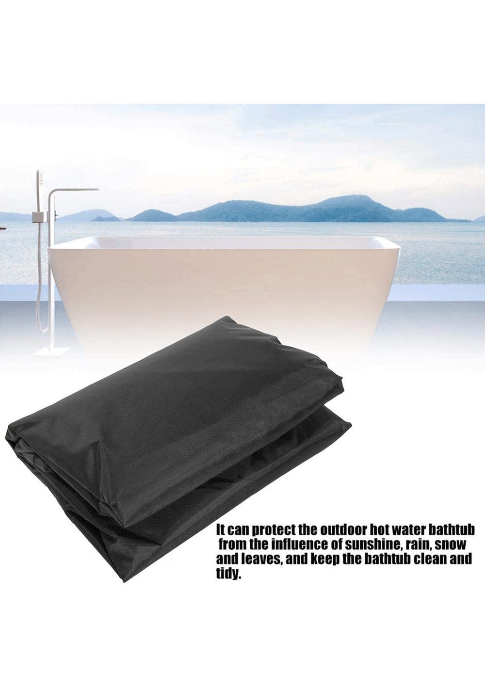 Outdoor Square Hot Tub SPA Cover Protector 231 X 231CM Material: Polyester Product dimensions (LWH): 231x231x30 cm Package dimensions (LWH): 24x24x9cm Weight: 750g Feature Premium Material: Made of high quality 210D polyester fabric with PU coating, it is rain and sun protection, with high strength breathability, weather resistance and tear resistance, and easy to clean, long life. Protection: The protective cover helps protect the hot tub from rain, sunlight, leaves and animals, assists you to keep the tub clean and tidy, and saves time by reducing the number of times you clean the tub. Easy to Use: The hem of the waterproof cover is designed with a drawstring, which is convenient for firmly fixing the cover, and it is light and foldable for easy storage, easy installation and disassembly, and storage does not take up space. Wide Application: This square bathtub cover is versatile, it can prevent snow and frost in winter, dust and sunscreen in summer, and can also prevent falling leaves in autumn, multi-functional, universal in all seasons; suitable for outdoor hot tubs and hot springs. Package Include 1 x Outdoor Square Hot Tub SPA Cover Protector