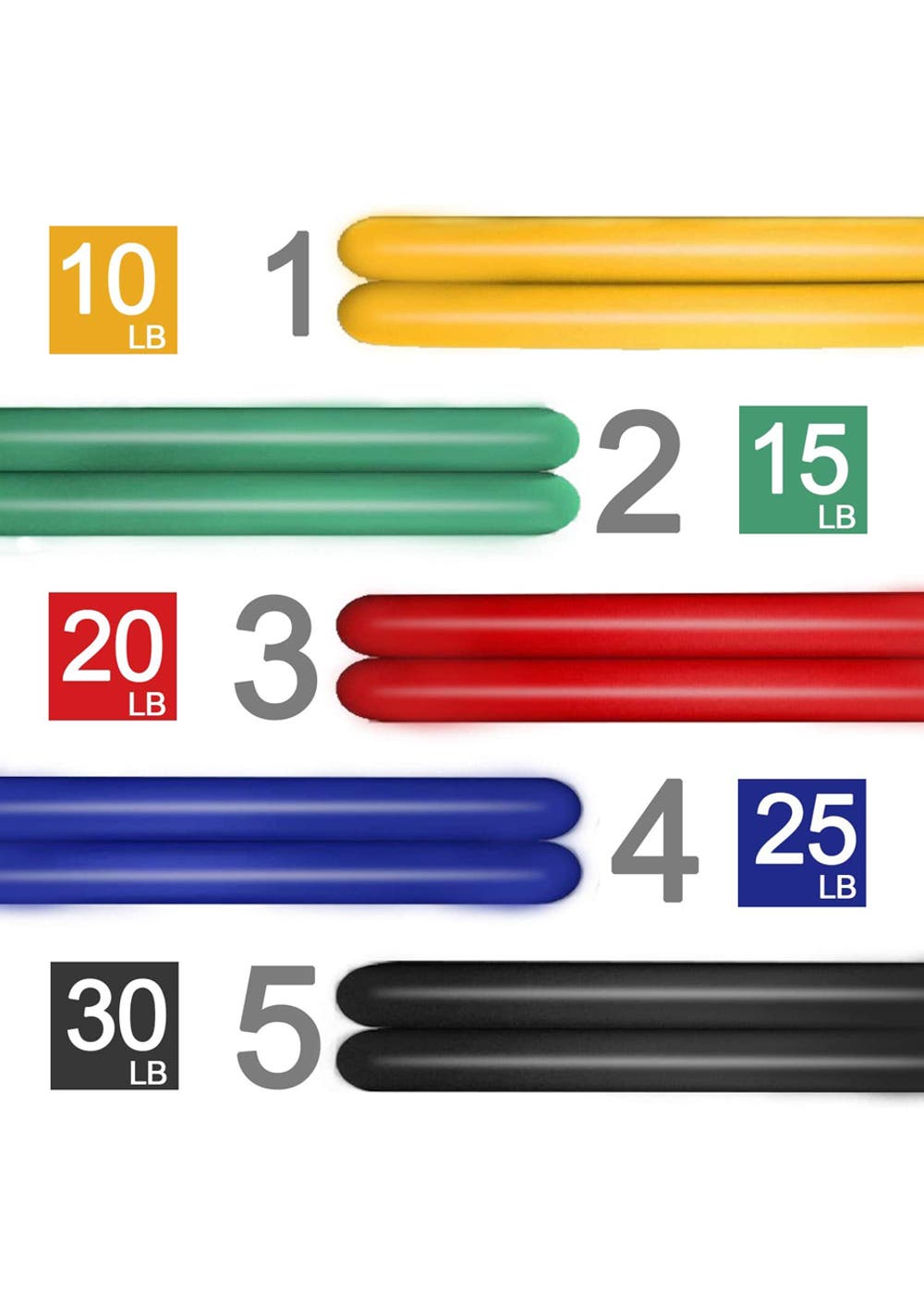 Five colors workout bands, they can stackable used, suitable for most of people, to help you do exercise at home, having a wonderful time.
