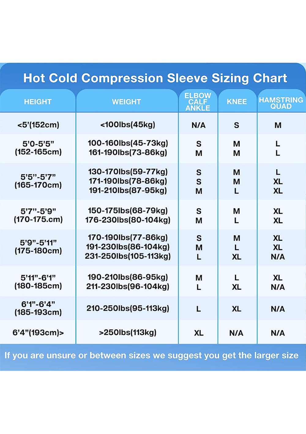 Gel Pack for Injury Cold Wrap for Knee Calf Elbow-XL<br>Material: Gel, Lycra fabric<br>Product dimensions (LWH): 20 x 27 x 2 cm<br>Package dimensions (LWH): 29 x 20 x 3 cm<br>Weight: 940g<br>Feature<br>【360° Coverage Cold Therapy】: hot cold therapy compression sleeve conforms to your body perfectly and provides 360 degrees of compression therapy and 100% coverage of the treatment area.<br>【Wearable Cold Pack】: Gel ice pack sleeve effectively supports and stabilizes injuries with total mobility when using it without velcro or straps. This flexible ice pack is more convenient and ideal for people who play basketball, tennis, golf, football, soccer, run or climb.<br>【Gel Ice Pack for Elbow, Wrist, Knee, Hamstring, Calf, Ankle】: The hot & cold therapy ice pack is multifunctional and ideal ice wrap for elbow, wrist, knee, hamstring, calf, ankle. This pain relif cold pack is also great for recovery of meniscus, ACL, MCL, bursitis.<br>【Flexible and Reusable Cold Pack】: This ice pack wrap is made of cutting-edge material and expert-grade gel with slip on design comfortable and versatile for injuries recovery.<br>【Hot & Cold Therapy Gel Pack】: This compression cold pack is both microwave and freezer safe, allowing you to use hot or cold therapy depending on your needs; Maintains flexibility when hot or cold.<br>Package Include<br> 1 x Gel Pack for Injury Cold Wrap for Knee Calf Elbow