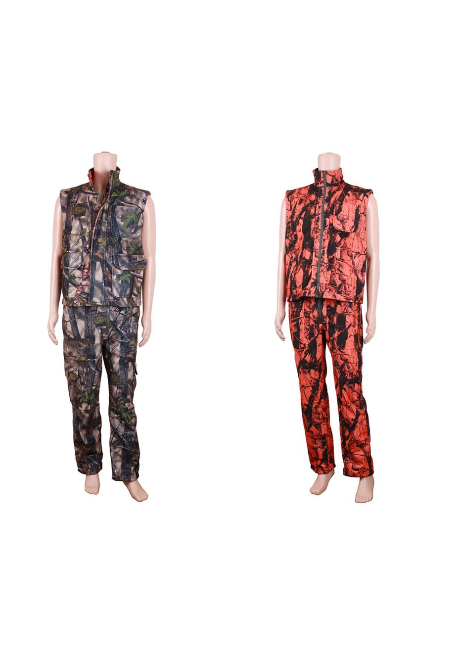 Material: Cotton, Polyester Product dimensions (LWH): cm Package dimensions (LWH): 40 x 30 x 8 cm Weight:1.5kg Features  Soft, silent, lightweight material  One side features a camouflage pattern while the other is blaze orange  Both the outside and inside have 3 pockets for the vest, and two for the pants in green side  Vest has a full swing-over reversible zipper  Pants has zipper with the elastic bands  Machine washable  Size  S Vest Shoulder 45 Chest 110 Long 69 cm, Pants Waist 89-99 Long 105 cm  M Vest Shoulder 47.5 Chest 114 Long 70 cm, Pants Waist 91 Long 107 cm  L Vest Shoulder 49 Chest 118 Long 72 cm, Pants Waist 94-104 Long 109 cm  XL Vest Shoulder 50 Chest 120 Long 76 cm, Pants Waist 96-106 Long 112 cm  XXL Vest Shoulder 51 Chest 128 Long 80 cm, Pants Waist 98-108 Long 116 cm