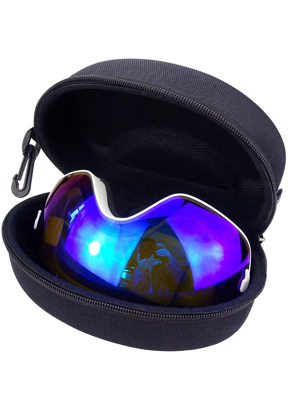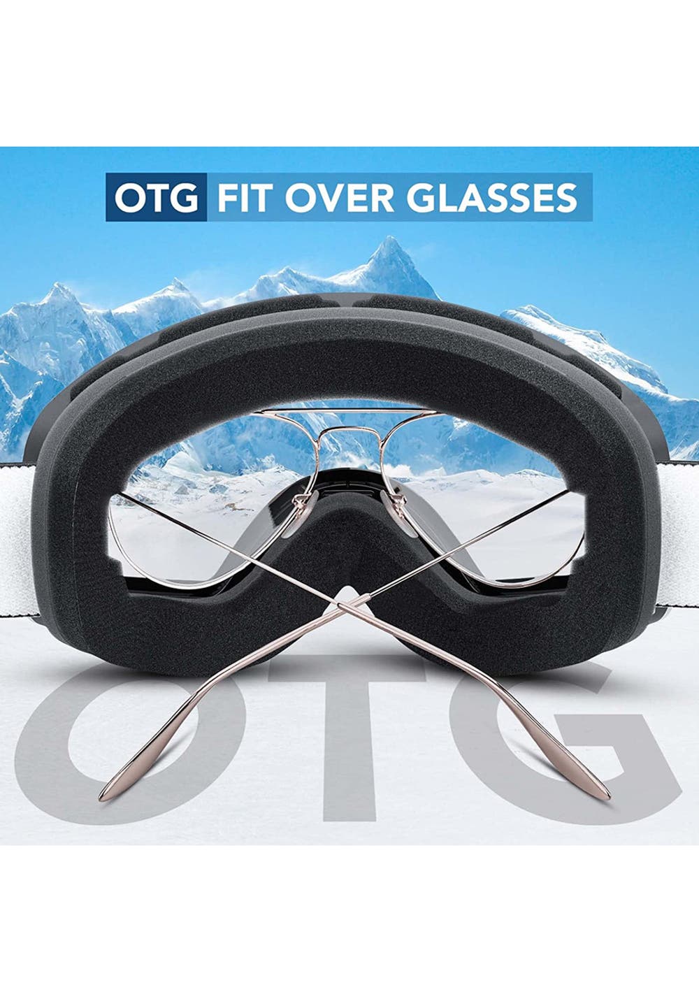 Features  The large spherical lens of the Ski Goggles provides a wider and more clear view of the slopes compared with traditional cylindrical lens. With the triple-layer soft breathable foam which attached tightly on the frame, the snow sports goggles wrap across your face and eyes seamlessly and protect them from snow, wind, sand, sun and rain, making you feel super comfortable and warm, and won’t block your vision compared with other rough foam.  Anti-fog and Impact-resistant and UV Protection - The professional anti-fog ski goggles can prevent fogging and protect your eyes from impact and with durable, light and detachable double-layer lens design, providing you an excellent clear vision and protecting your eyes from harmful sun rays with UV400 protection while skiing, snowboarding, snowmobiling and other snow sports.  Helmet Compatible & OTG Design- The ski goggles over glasses comes with ultra-long and adjustable elastic strap and OTG design. Allowing you to wear your glasses under the snow goggles easily and being compatible with all kinds of helmet, which are suitable for both men and women.  Professional Ventilation- Our snowboard goggles feature professional ventilation system, which is aimed to optimize the flowing air over the inside of the lens and avoid from fogging by bringing fresh air and exhausting moisture effectively.  Package Include  1 x Unisex Double Layers UV Anti-Fog Big Ski Mask Goggles  1 x Storage Case