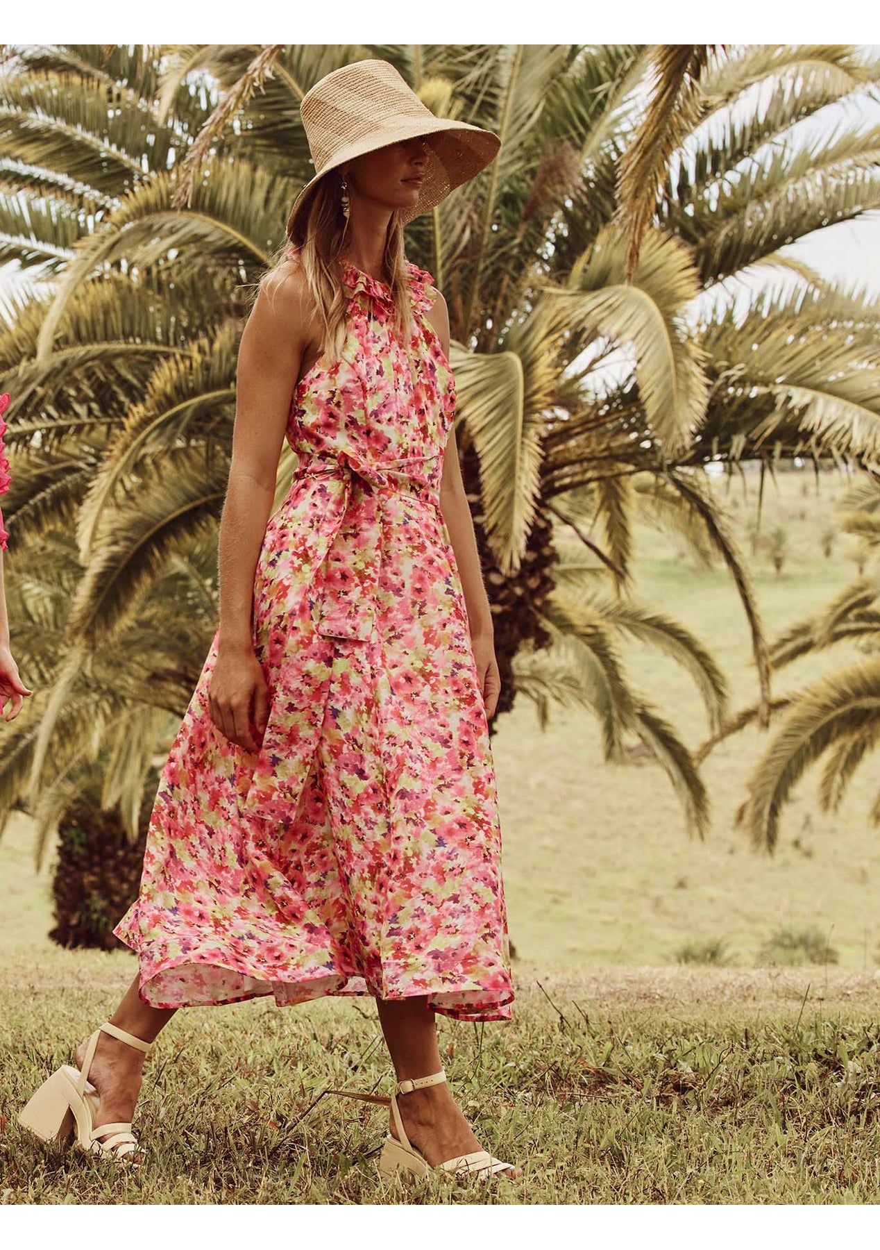 Offering a fresh femininity the Angelita Mdi is cut from our signature silk linen. Decorated with frill detailing around the halter neckline this dress features a low v back and matching waist tie displaying a considered simplicity. Garment Details Premiu