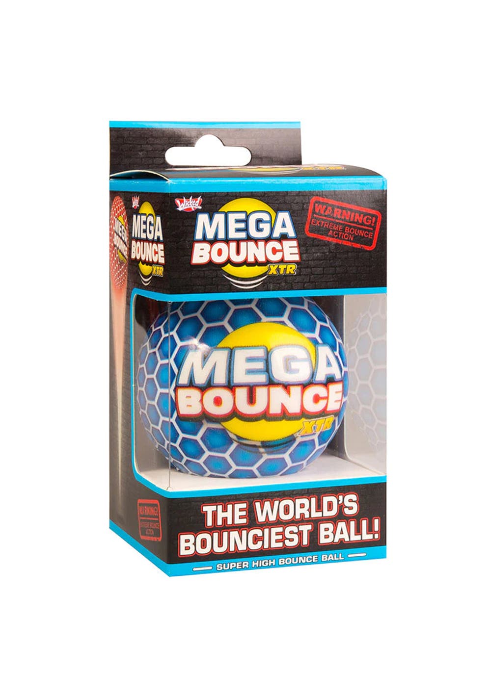 Our team of scientists worked day and night experimenting with all kinds of crazy materials to create the world’s bounciest high bounce ball, the Mega Bounce XTR! Drop it onto a hard surface and it’ll bounce 85% of its original height! A basketball manages a measly 56%! Throw it down hard hard and watch it soar way higher than a 2 storey building…it really is MEGA!