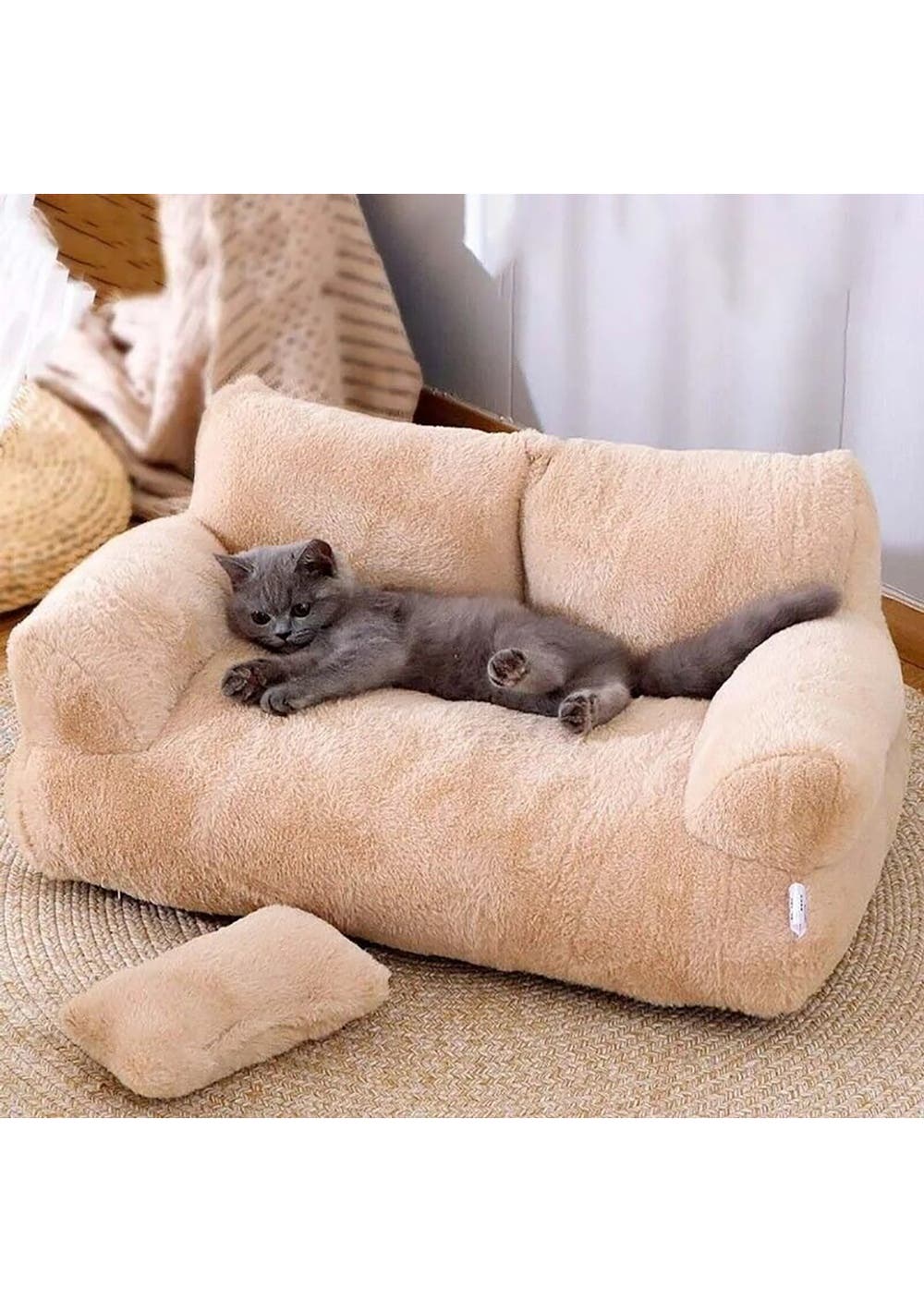 Luxurious Plush Sofa Bed for Cats and Small Dogs - Khaki