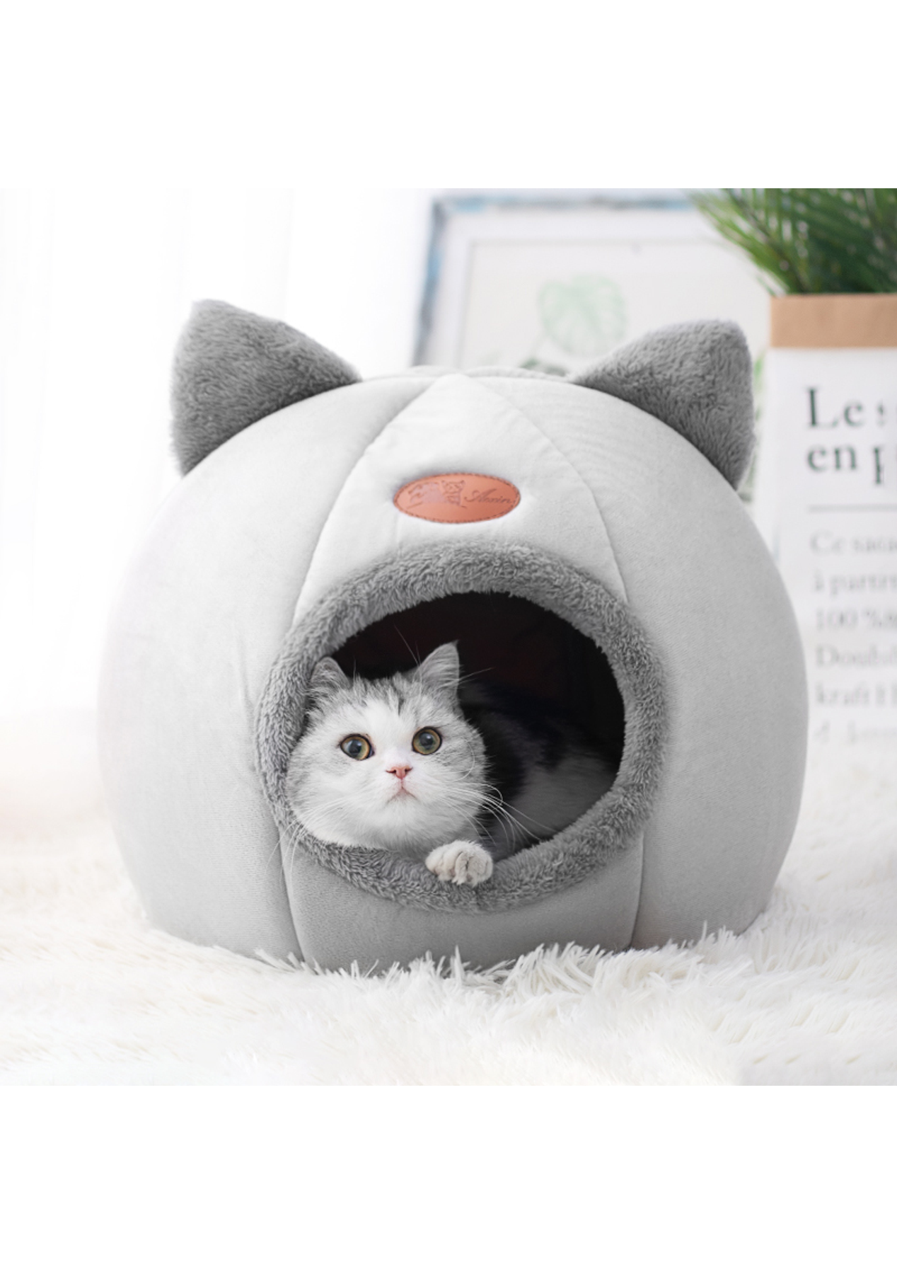 The liner is made of short plush, it is very soft and warm. Lovely cat ear and simple and beautiful colors, which is attractive to your pets. Made in super cozy materials, has semi-enclosed space to make your cats feel warm and safe. Gives your pet some privacy and creates a nice sense of security. The bottom is made of wear-resistant, moisture-proof Oxford cloth and non-slip particles, which can be placed in balcony corridors or other places without worrying about sliding, providing a warm and dry shelter for pets
