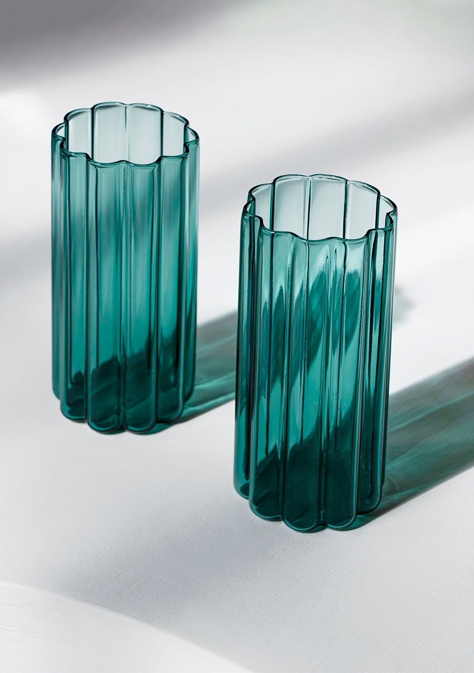 George Collective - Wavy Tall Tumbler - Set of 2 - Clear Green