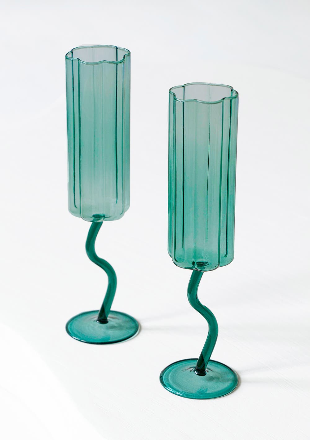 George Collective - Wavy Champagne Flute - Set of 2 - Clear Green