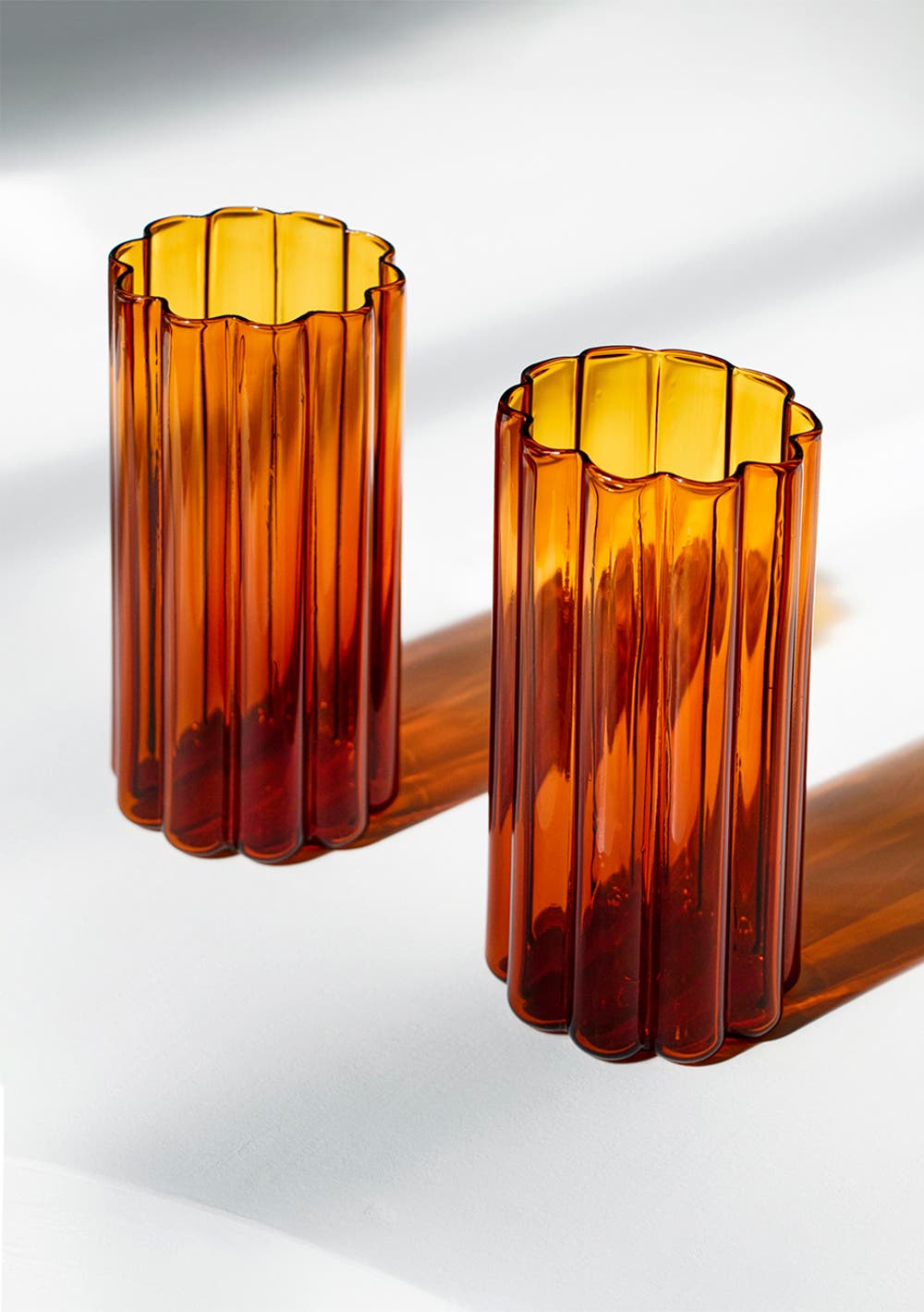George Collective - Wavy Tall Tumbler - Set of 2 - Clear Amber