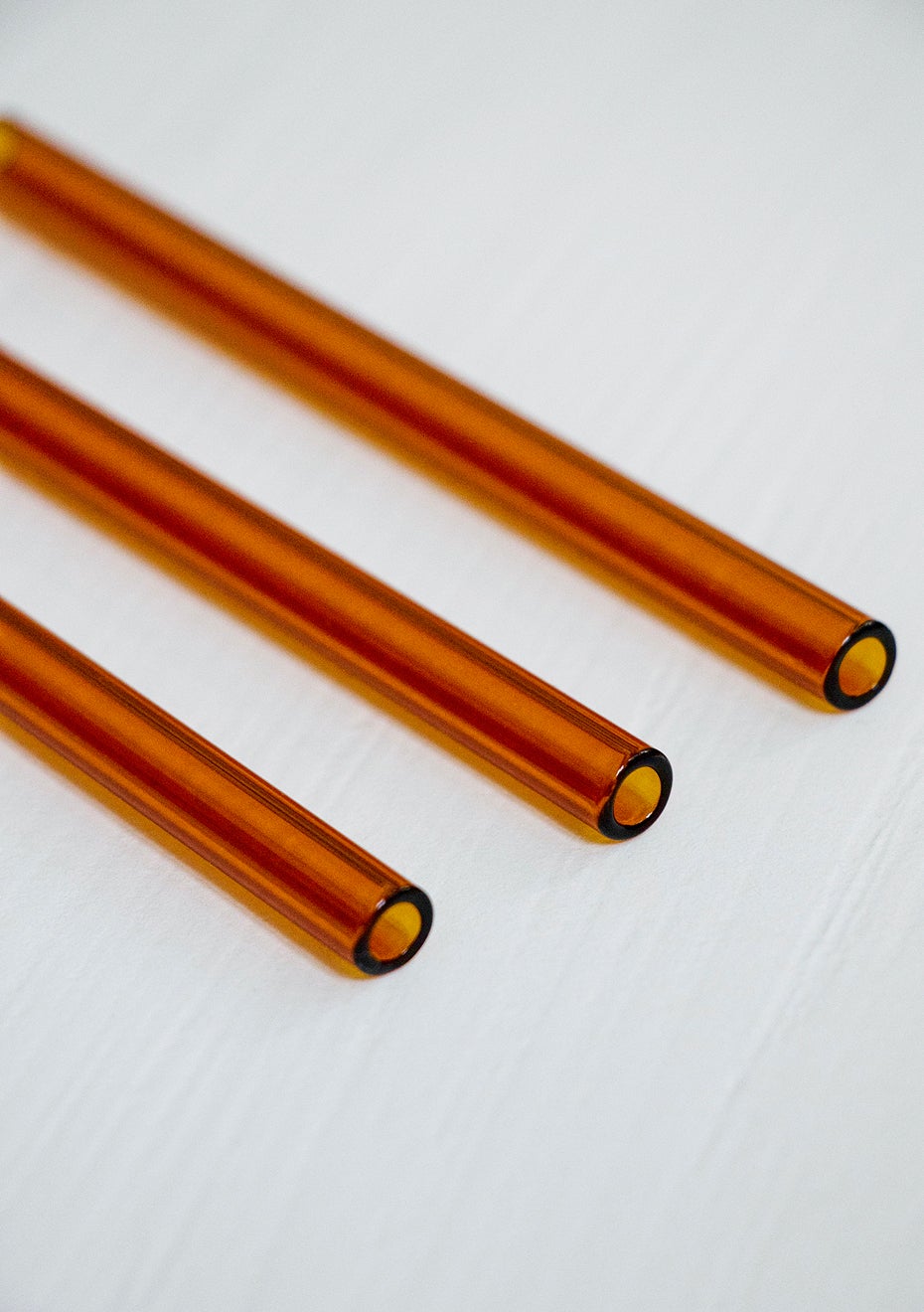 George Collective - Glass Cocktail Short Straws - Set of 3 - Clear Amber