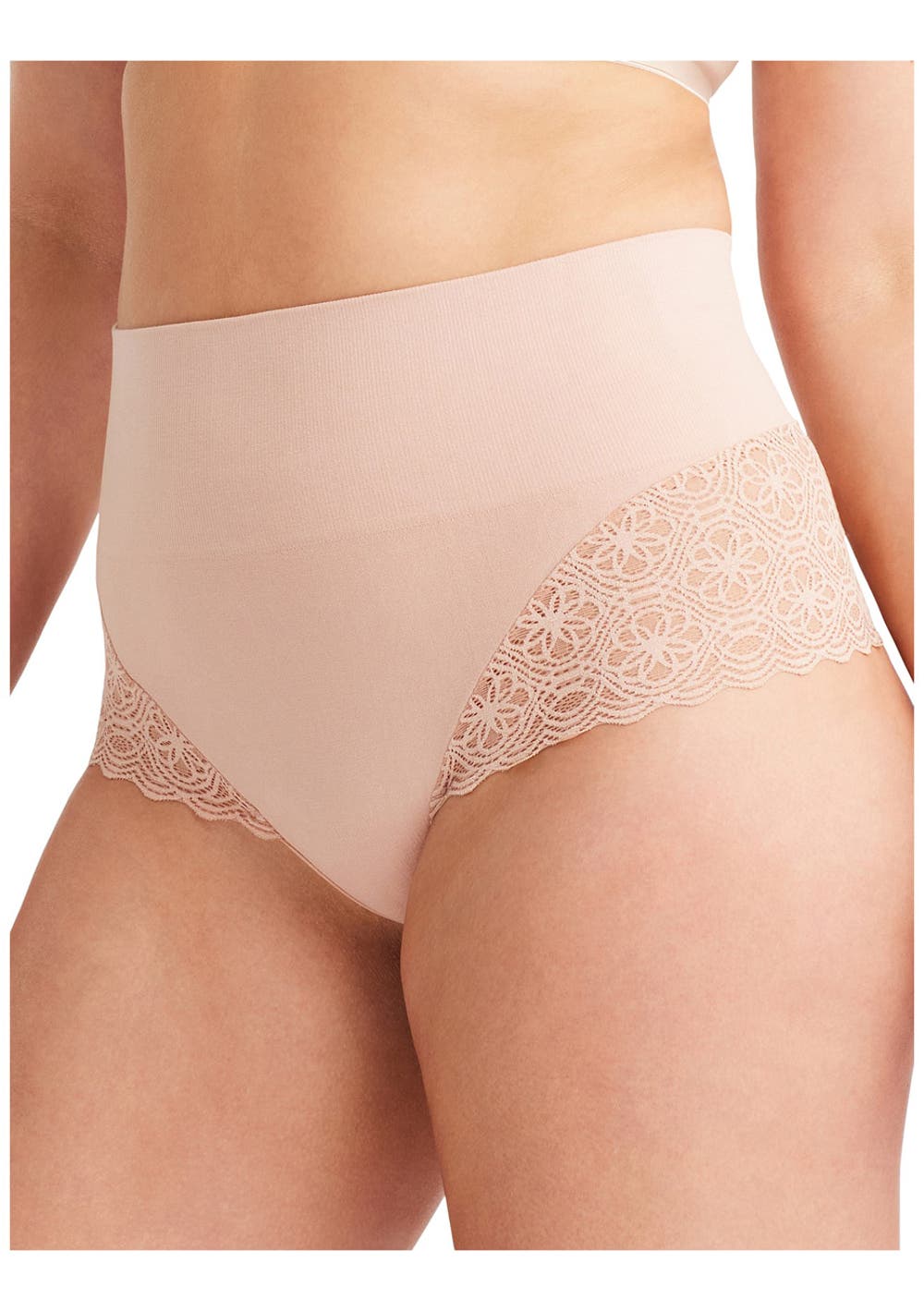 Super supportive and super soft. This Bamboo rich collection is all you need it to be and more. The fabric is made with 62% Bamboo which is transformed into super soft yarns that allow your body to breath, whilst it wicks moisture and heat away from your body to keep you cool and your skin dry for all day wear. Combined with the recycled Nylon stretch lace this combination provides NO VPL and a feminine appeal....you'd never guess it was firm support shapewear! - Waisted thong - Double band offers firm support - Shapes and supports the tummy - Lace provides no visible panty lines - Breathable bamboo yarns - Transfers heat and sweat from body - Keeps you cool and dry - Firm support - Designed in Australia, by women, for women Main Fabric: 62% Bamboo, 30% Nylon, 8% Elastane Lace: 67% Recycled Nylon, 18% Nylon/Polyamide, 15% Elastane