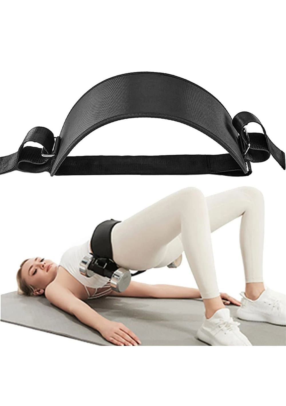 Product Description: Experience superior strength, durability, and comfort with this enhanced fitness belt. Its extended design measures 15cm in width and 55cm in length, with an adjustable waist to fit most individuals.Crafted from EVA composite cloth, this belt features two 5cm wide side straps for convenient storage of dumbbells and other equipment.Shape and protect your hips effectively during hip presses and related exercises. Achieve your desired hip shape with the extended belt, offering a snug fit and safety during hip press exercises.The adjustable hip thrust allows for personalized adjustments, catering to athletes of all sizes. The wider design provides enhanced waist protection, while the non-slip padding ensures comfort and minimizes sliding for a better exercise experience.This versatile booty belt is designed for a wide range of exercises, including glute bridge training, deep squats, pull-ups, single leg supports, sit-ups, and back training. It is compatible with various equipment such as dumbbells, kettlebells, plates, or any weighted hip thrust belt, making it a preferred choice for professional fitness enthusiasts.It also helps in developing pectoralis major and minor muscles, triceps, biceps, and enhancing lung capacity.The belt is easy to use and fit. Simply thread the straps on both sides through your equipment, securely fasten them, and you're ready to start your training.?Product Specification:Color: BlackMaterial: Polypropylene + EVA Composite Material + Steel BuckleSize: 55 x 15.5 x 4.8cmWeight: 310gFunction: Hip Thrust BeltPackage Inclusion:1 x Hip Belt