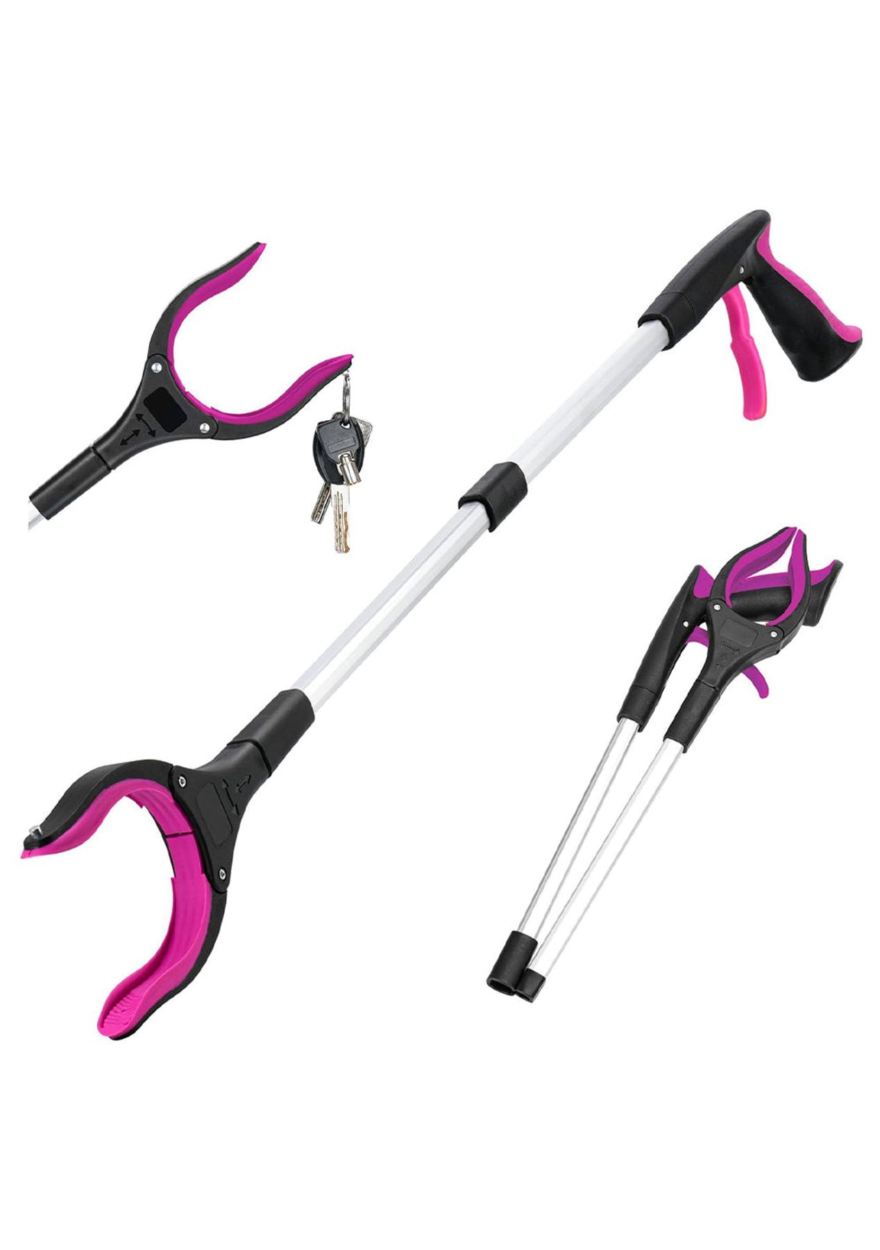 Product Description: Experience unparalleled ease of use with this Foldable Gripper Extender Hand Tool with 360 Rotating Jaw. Designed specifically for seniors and individuals with limited mobility, this lightweight grabber tool provides a convenient and independent daily routine. Its responsive handle ensures quiet operation and effortless maneuverability.Crafted from high-strength aluminum alloy, this grabber's pole guarantees lasting durability. The wear-resistant metal wire and robust connection structure prevent breakage, ensuring a long-lasting tool. The ergonomic handle design enhances comfort and stability, providing a reliable and enduring experience.The high-quality silicone jaw offers exceptional anti-slip grip, making it effortless to pick up smooth items like glass or cans. Its versatility extends to small objects such as pills, coins, and papers, making it an all-around tool for various tasks.Equipped with a 360 rotating feature, this grabber reaches tight corners and gaps with ease. The built-in magnet in the jaw allows for effortless grabbing of metallic items like keys and nails. Its foldable design ensures convenient storage and portability, adapting to your needs wherever you go.When folded, this grabber shrinks down to a compact size of 16.5 inches, making it easy to store in smaller spaces. Available in a range of colors, this grabber extender hand tool enables safe retrieval of items placed high up and facilitates picking up dropped items without the need to bend over.Product Specification:Color: Red, Orange, Yellow, Green, Blue, PurpleMaterial: Aluminum AlloyExpand Size: 79 x 8.5 cmStorage Size: 41.5 x 8.5 cmWeight: 260gFunction: Foldable Aluminum Alloy Gripper Extender Hand ToolPackage Inclusion:1 x Gripper Extender Hand Tools