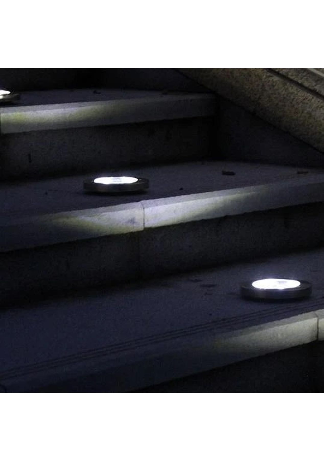 ?Product Description: Enhance your outdoor space with these simple yet effective solar ground lights. Great for lighting pathways, or adding a decorative effect, these 8-LED cool white solar lights are perfect for areas where connection to electricity is not practical.These low-maintenance lights absorb energy from the sun during the day, and automatically light up at night thanks to their auto-on light sensor. With 11.5cm spikes, you can ensure they'll stay put, and because they have no wires, so they're safe for children and pets.The light is equipped with stylish stainless-steel covers will suit any outdoor living space - whether classic or modern, while the IP55 waterproof rating means they'll light up your garden all year long. Available in a 4, 8, or 12 pack, they'll brighten any outdoor space.?Product Specifications:Outdoor 8 LED Solar Garden Ground LightsStainless steel outerSolar-powered ground lightCool white LED lightNi-MH rechargeable battery includedThe auto-on light sensor when it gets darkNo wiring - safe to use around children and petsPerfect for gardens, pathways, lawns & garden bedsDetailed Specifications:Charging Time: Around 8 hours under sunlightLEDs: 8x Cool White LEDsLighting duration per charge: 6-8 hoursWaterproof rating: IP55Dimensions: 12.6 x 11.5 x 1cm?Package Inclusion:4 x Lights
