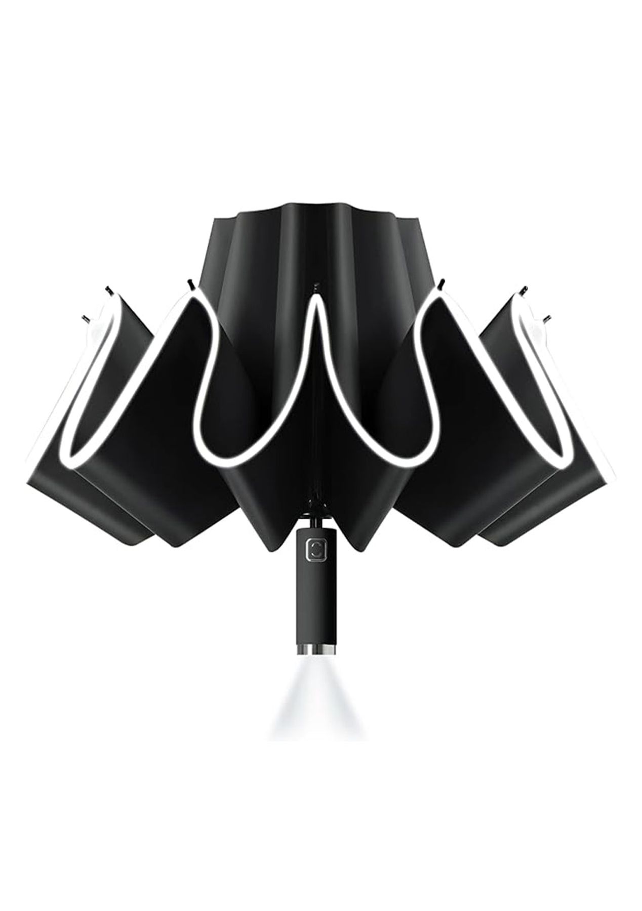 Product Description: Experience the convenience and functionality of this Reverse Folding UV Umbrella with LED Flashlight and Reflective Strips. Unlike traditional umbrellas, this innovative design keeps the wet part of the umbrella inside when closed, preventing water from dripping and keeping your floors and car dry. It's compact and portable, making it easy to carry wherever you go.Stay safe and visible at night with the built-in LED lights that illuminate the road ahead. This feature helps prevent accidents and ensures your visibility to drivers, bicyclists, and pedestrians. No more struggling to close your umbrella before entering your car, as this umbrella features an auto open/close mechanism for quick and effortless operation.Designed with reflective strips along the canopy edge, this umbrella enhances your visibility from all angles during low light and rainy conditions, providing 360 degrees of high-visibility light. Stay dry and stylish with the faster and smoother open/close action of this umbrella.With a large 106cm canopy, it offers ample coverage for two people, keeping you safely dry. When not in use, it conveniently collapses to a compact 6cm length, making it easy to carry and store.?Product Specification:Color: Black, Grey, Beige, Blue, PinkWeight: 550gUmbrella Cloth Material: Impact ClothUmbrella Rib Material: FiberUmbrella Cloth Density: 190TMedium Rod Material: IronUmbrella Handle Material: RubberNumber of Umbrella Ribs: 10RibsClose Size: 33 x 6cmOpen Size: 106 x 63cmBattery Information: LR44?Button Battery(included£©Power Supply: Battery PoweredFunction: Reverse Folding LED Umbrella with Reflective Strip Package Inclusion:1 x Reverse Folding Umbrella1 x Button Battery 1 x Manual