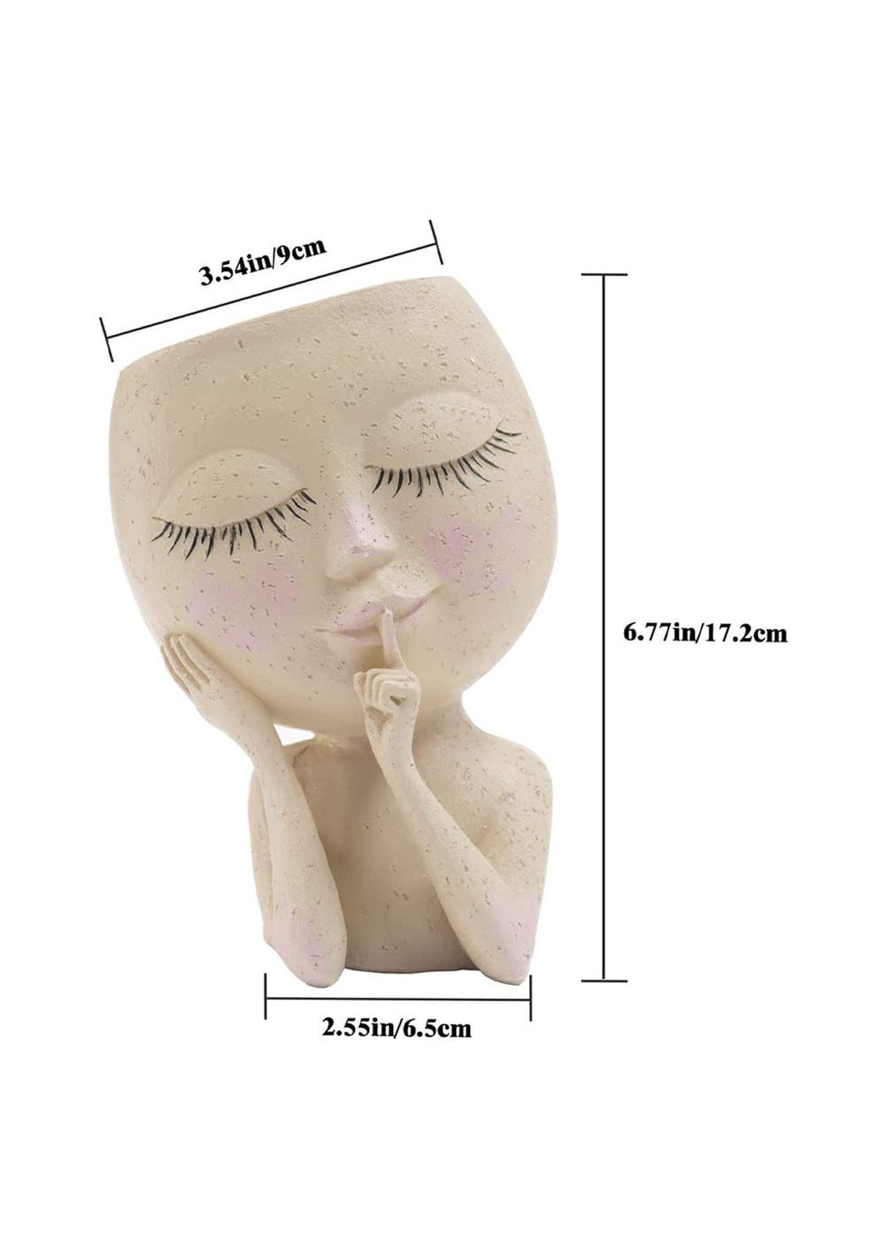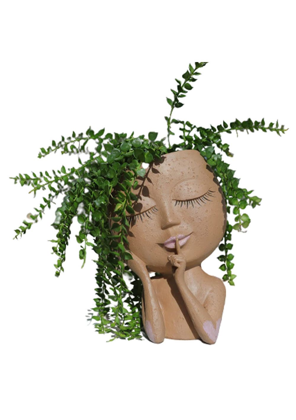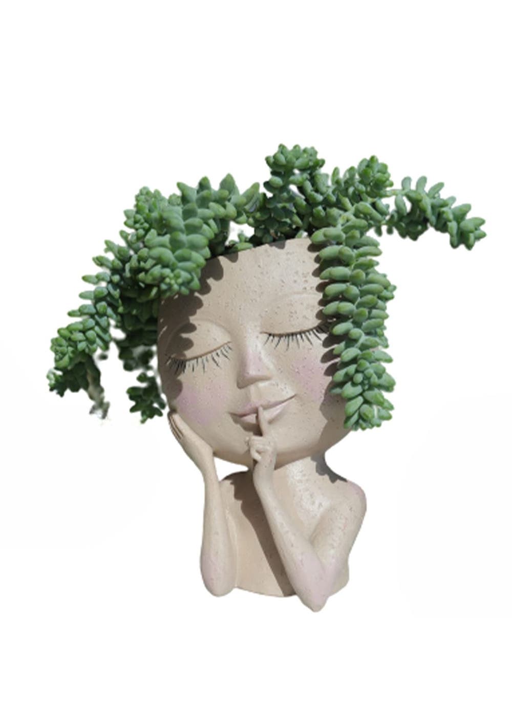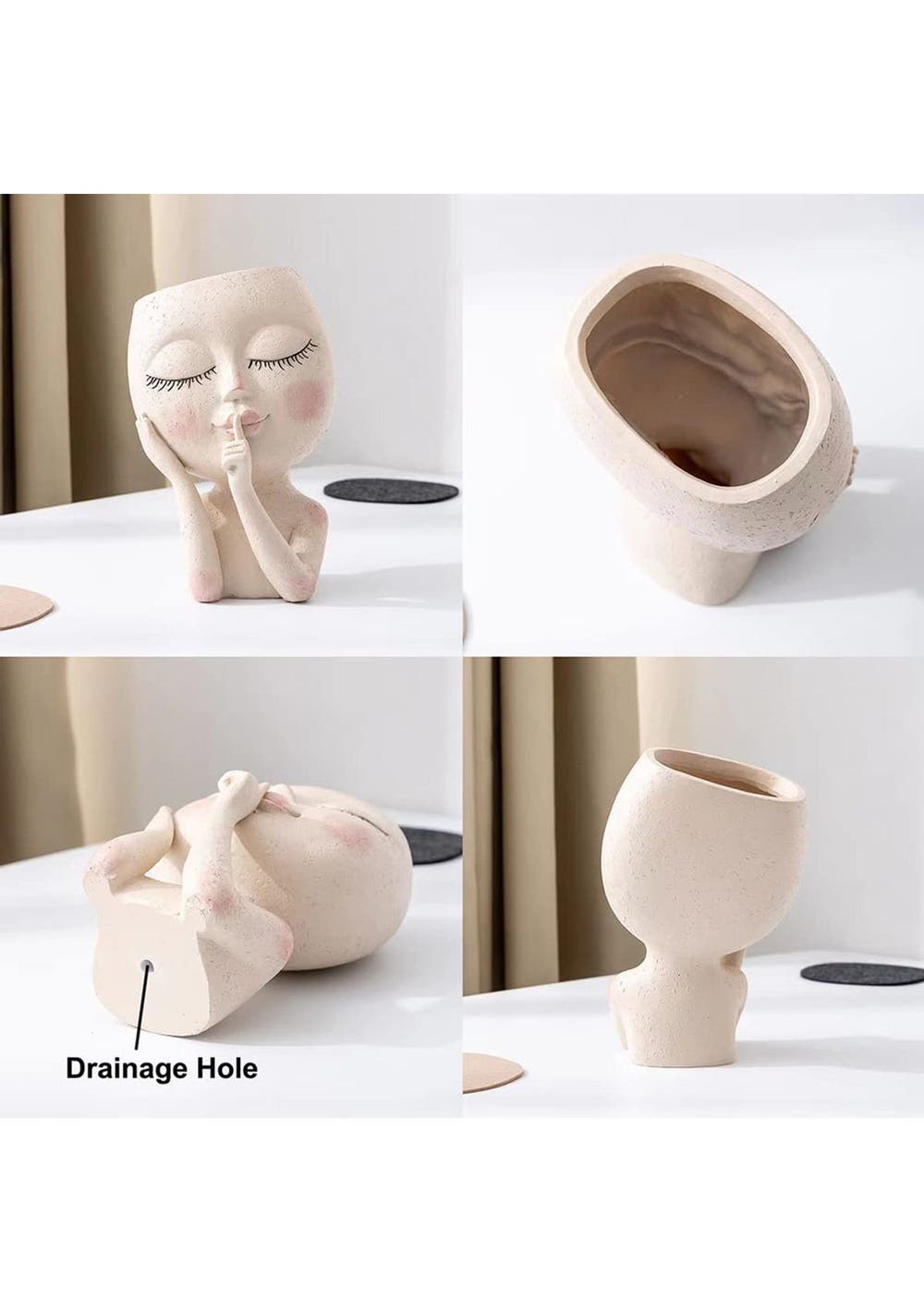 Unique Face Planters Pot for Indoor Outdoor Plants with Drainage Hole - Khaki