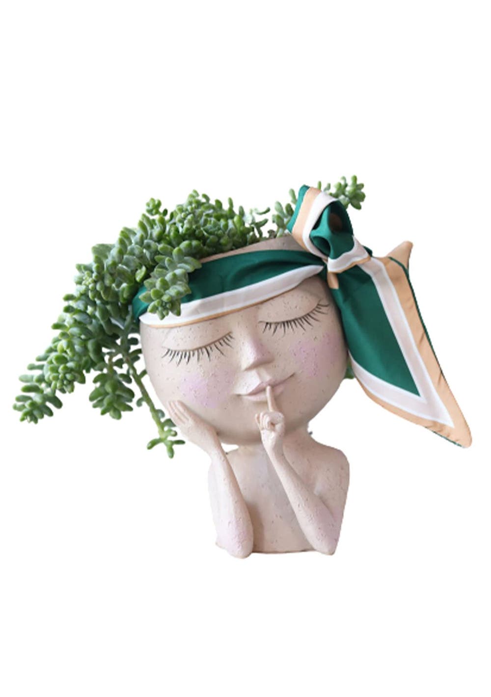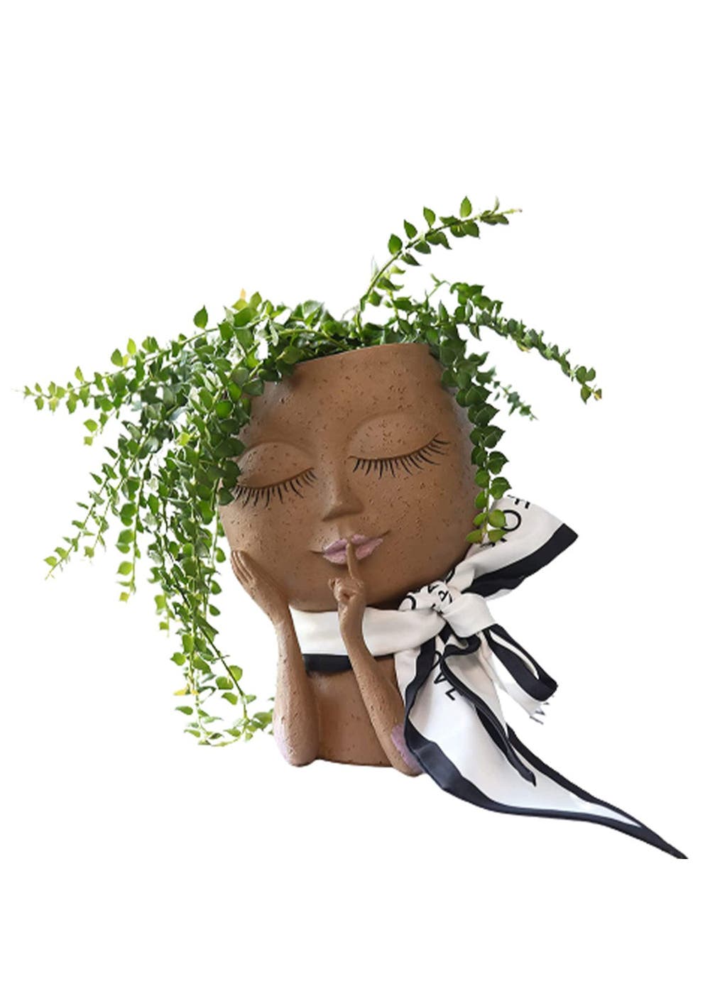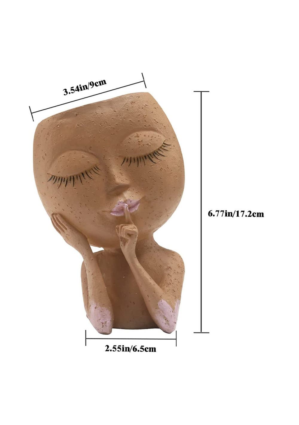 Product Description: The exquisite details head planters for indoor plants are made of high-quality resin by excellent handmade, durable and artistic. The special process and superior quality material make it will not crack nor color-fade over time.?The size of cute face pots for plants is 6.77 x 2.55 x 3.54, and the cavity is large is enough to hold soil and plants. Just the right size and unique look make it the perfect accent to any space, like a home office and garden.?The Hole drainage design of this face planter pots head can truly solve the problems faced by most plant lovers, the small holes arranged at the bottom can ensure that the drainage system will not be blocked, and will not cause soil leakage, but can provide better than the water circulation and air penetration to help your plants grow healthily.?Our fantastic lady head design planter is a sure way to show up your creative ideas. Jazz your girl up by adding a headscarf, some pearls, eyeshadow, and a couple of butterflies. Let your imagination run wild makes a unique piece.?This eye-catching Face Flower Pot is a perfect gift for your friends and family who love gardening and enjoying the decoration of their home, and as a gift for anniversaries, birthdays, housewarming celebrations, etc.?Product Specification:Color: Brown, KhakiWeight: 400gMaterial: ResinSize: 6.77 x 2.55 x 3.54 inchesFunction: Face Planters PotNote:The plants, scarves and decorative accessories are not includedPackage Inclusion:1 x Face Planters Pot