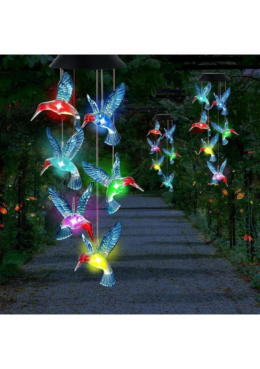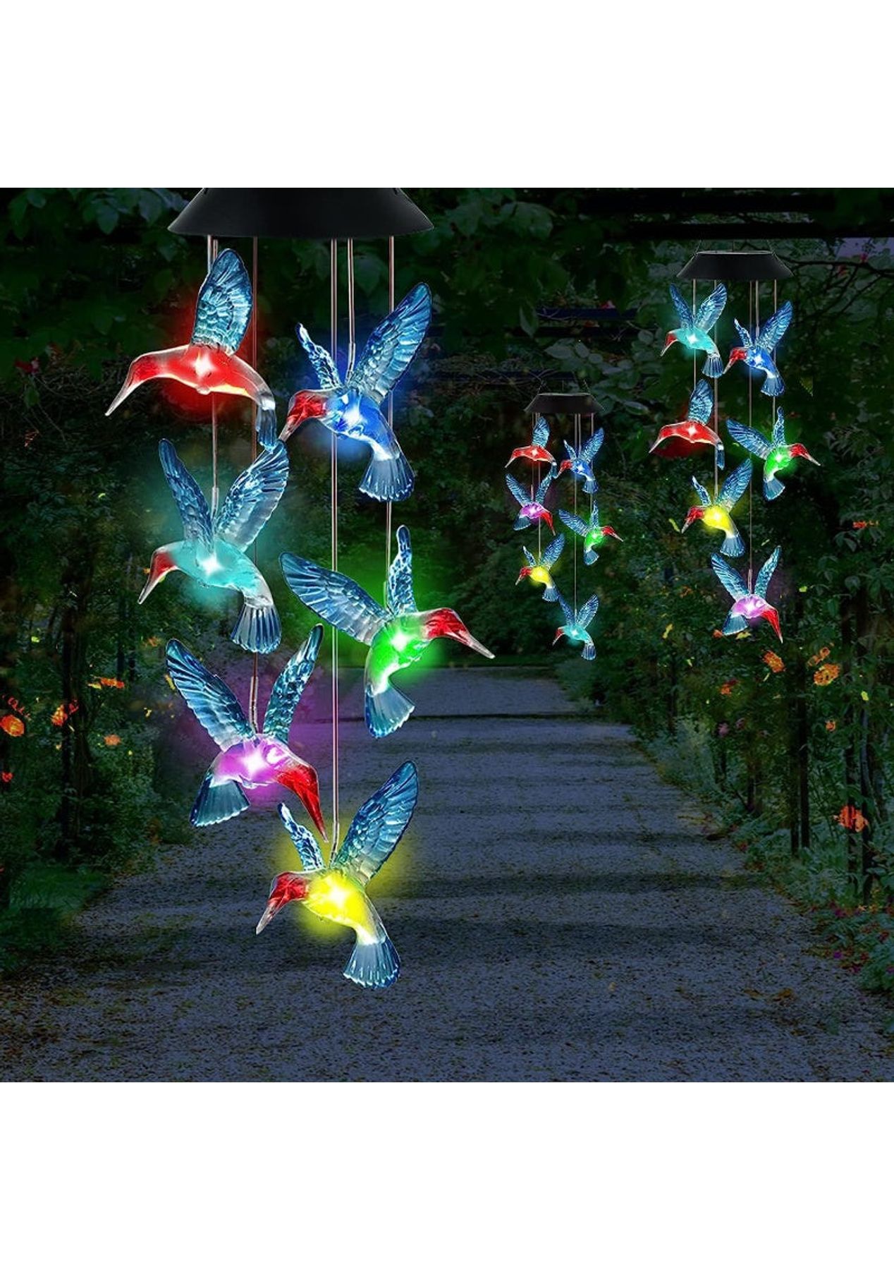The hummingbird solar LED wind chime features multiple LED lights that are powered by solar energy and stored in a built-in battery for long-lasting use.? With its unique light control technology, this wind chime is able to automatically charge during the day and light up at night, making it an energy-saving and convenient lighting option for your outdoor space. Installation is a breeze with this wind chime, as there is no wiring required. It is also waterproof and sunscreen, ensuring durability even in harsh weather conditions.? Whether it's for your road, courtyard, showcase, shop or stage, this wind chime will add a warm and romantic atmosphere to any setting.