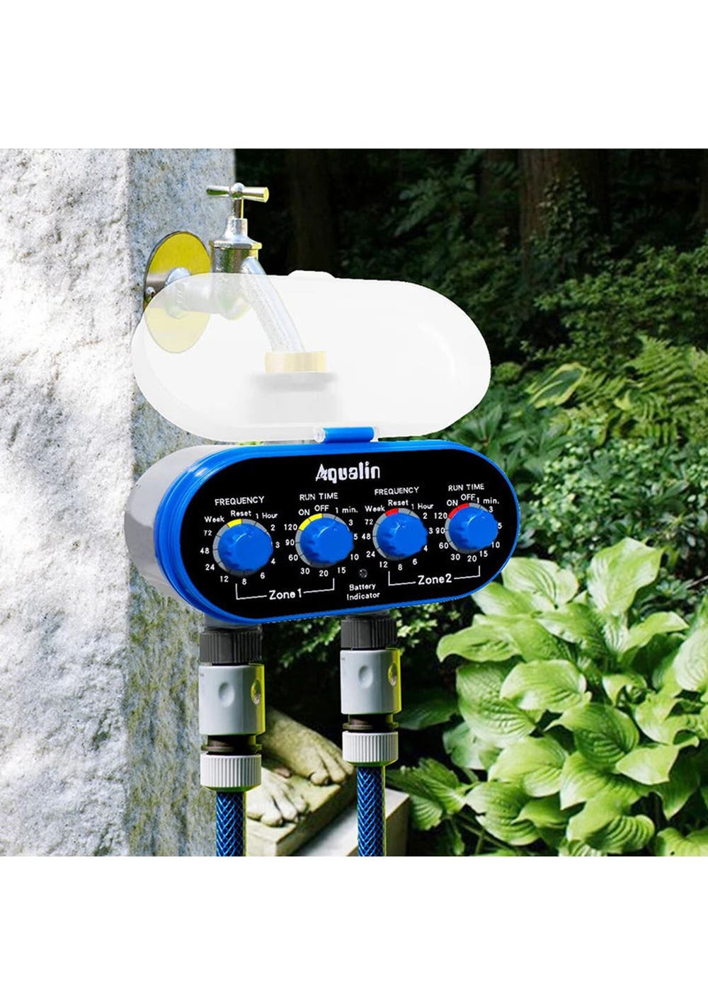 Two Outlet Automatic Watering Four Dials Water Timer - Blue