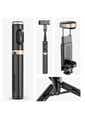Product Description: The Pocket-sized 4-in-1 Phone tripod selfie stick is an extremely versatile tool that helps you capture & record the perfect shots every single time. This easy-to-set-up remote-control selfie stick works as a phone stand, a wide-view tripod, a selfie stick, and a hand-held vlogging stick.?Our phone tripod for iPhone comes with a detachable Bluetooth remote. Set up your device on the tripod and click the perfect shot from a distance of up to 32 ft. The selfie stick expands up to a length of up to 28 inches, allowing you to capture the entire view behind you and take memorable group selfies.?The head of our selfie stick is rotatable for portrait & landscape recording. The selfie stick body is made of highly sturdy Aluminum Alloy while the legs are made of tough ABS, with non-slip bottom pads, which keep the tripod stable & protect your device.?This pocket-sized tripod selfie stick is portable and weighs only 6.3 oz., light enough to carry anywhere. This extremely versatile device can be used for hand-held steady recording or vlogging, video conferences, watching videos, wide-view shots, hands-free recording, filming, and group selfies.?The included phone clamp expands up to 3" wide to securely fit practically any smartphone, even ones with cases. Works with iOS and Android, iPhone 14, 13, 12, 11, XR, X, 8, 7, 6, Pro, Max, Mini, Plus, SE, Samsung Galaxy S, A, M, LG, Motorola, Google, and others.?Product Specification:Color: Black, White, PinkWeight: 350gMaterial: Aluminum Alloy + ABSFolded Size: 8.375 x 0.18 x 0.18 inchesExtendable Size: 28inchPower Supply: USB RechargeableFunction: Portable Tripod Selfie Stick with Remote?Package Inclusion:1 x Tripod Selfie Stick with Remote1 x USB Charging Cable 1 x Manual