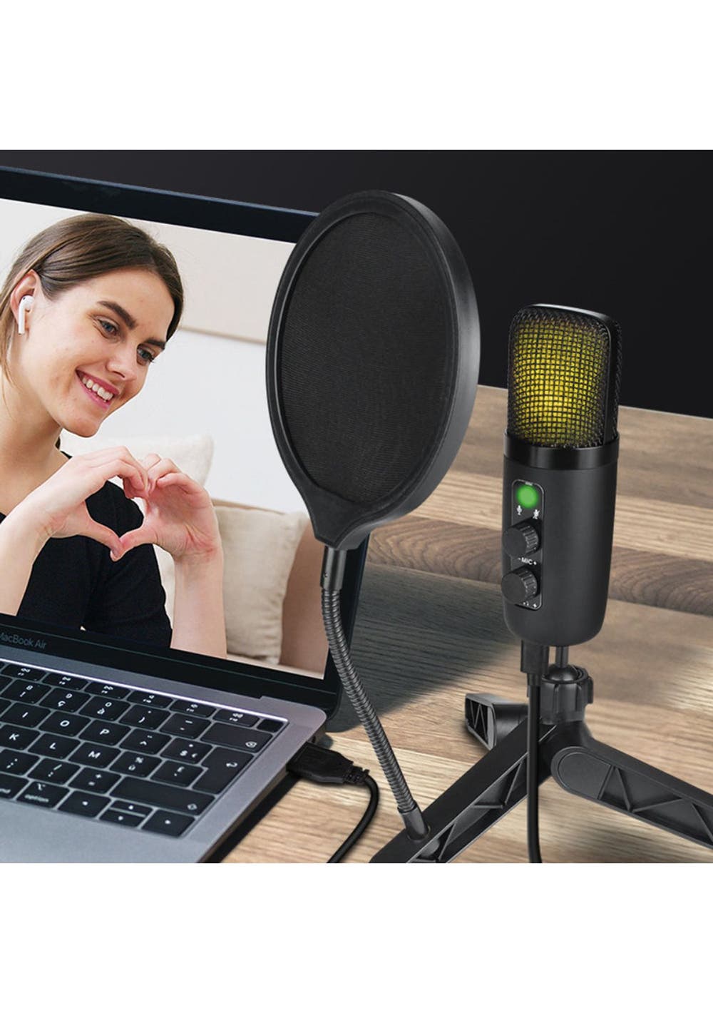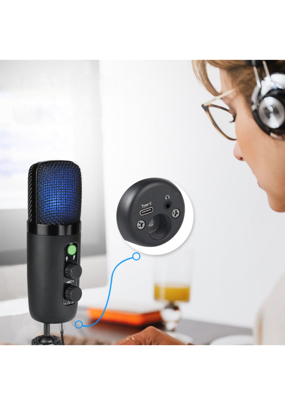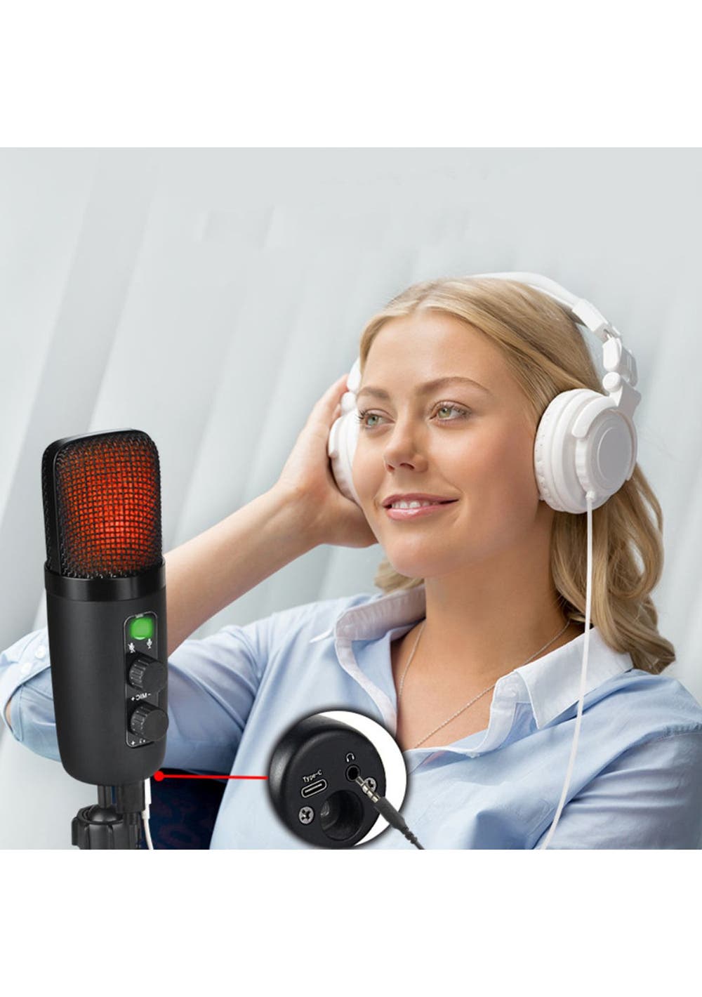 Product Description: This condenser microphone is compatible with mobile phones. You can conveniently enjoy recording songs on your iPhone and phones with a type C port. This condenser microphone is compatible with Windows, MAC OS, IOS, Android, and PS4. It can also be used for iPad and tablets with a USB-C port. The mic podcast equipment is driver-free and plug-and-play design, you don t have to install any software or complex settings. (Note: not compatible with Xbox)The mic is specially designed for radio studios, dubbing, podcasting, recording, gaming, MSN, Skype, and conference chatting. Cardioid polar pattern condenser microphone for computer captures your voice properly; producing clear smooth and crisp sound without static noise.A premium construction design podcast microphone with a stable tripod stand is convenient when you are doing voice-over or live streaming. It is easy to adjust, and you just need to unfold the tripod and attach it to the microphone.The the180-degree flexible design allows you to adjust the best angle. The high-quality foam windscreen prevents popping, improves vocal recording quality. The microphone is very light and small, which is good for your home or travel.?Product Specification:Color: BlackMaterial: Aluminum AlloySize: 15x9x45mm Weight: 270gFunction: Condenser MicrophoneConnection port: Type-C interfaceOutput interface: USB interfaceListening interface: 3.5MM diameter?Package Inclusion:1x Microphone1x Conversion Screw1x Type C cable 1x Desktop Stand1x Blow Prevention Net 1x Manual