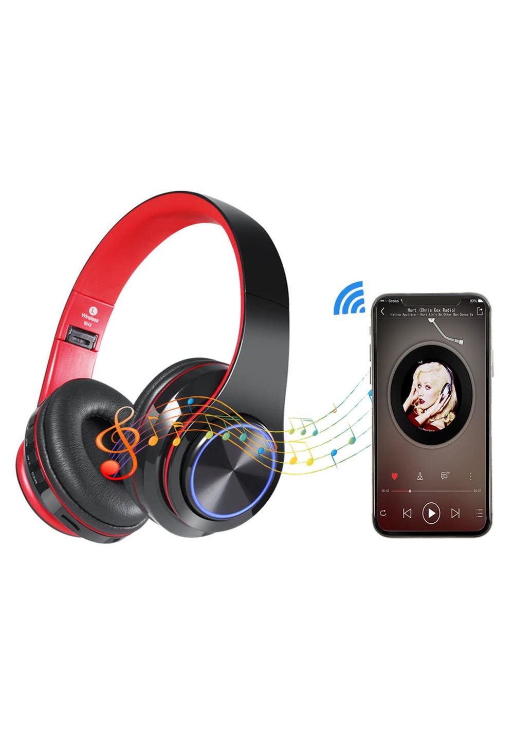Product Description: Hi-Fi Powerful Bass Stereo Sound Effect- This gaming headset is equipped with a 40mm diaphragm speaker drivers, with deep bass stereo sound giving you a high-quality music experience.Comfortable Over-Ear Fit- This Rechargeable headset is made with soft protein leather ear pads and equipped with a retractable headband that lifts the burdens for your ear. No discomfort after a long-time wearing.Wireless and Lightweight-?These high-quality gaming headphones can connect to your device via Bluetooth. In addition, it is lightweight and portable so you can enjoy streaming movies and listen to music anytime, anywhere without disturbing others.With Built-in Microphone- This headset has a built-in microphone that supports hands-free calling and voice reporting incoming call number. It is made with the latest enhanced technology that makes your voice sound crisp and clear even when in noisy environments.Bluetooth 4.0- This Headset adopts Bluetooth 4.0 CSR Chipset, lower power consumption, superior compatibility. Compatible with all devices that have a Bluetooth function and it comes with a 3.5mm Audio Jack that you can use to save power.Dedicated TF Slot- This headset has a dedicated TF Slot. This function enables you to listen to music without being connected to a device.Colorful LED Light- This gaming headset has seven-color transforming very cool LED Lights that glow when the headset is in use. Perfect for gaming and exercising.?Product Specification:Color: Red Black, Black Red, Black, WhiteWeight: 300gBluetooth: v4.0Transmission Range: 10 mBattery: 400mAh built-in, rechargeableCharging Time: 2.5 hoursUsage Time: up to 10 hoursStandby Time: up to 20 daysFrequency: 2.402-2.480GHZ, 2.4G ISM bandRF Performance: receiver sensitivity: -84dBm; transmit power up to 4dBmFrequency Response: 20 Hz - 20 KHzSignal to Noise Ratio (SNR): 70Db;Note: PS4 does not support Bluetooth connectionPackage Inclusion:1 * Headset1 * USB Charging Cable 1 * User Manual?