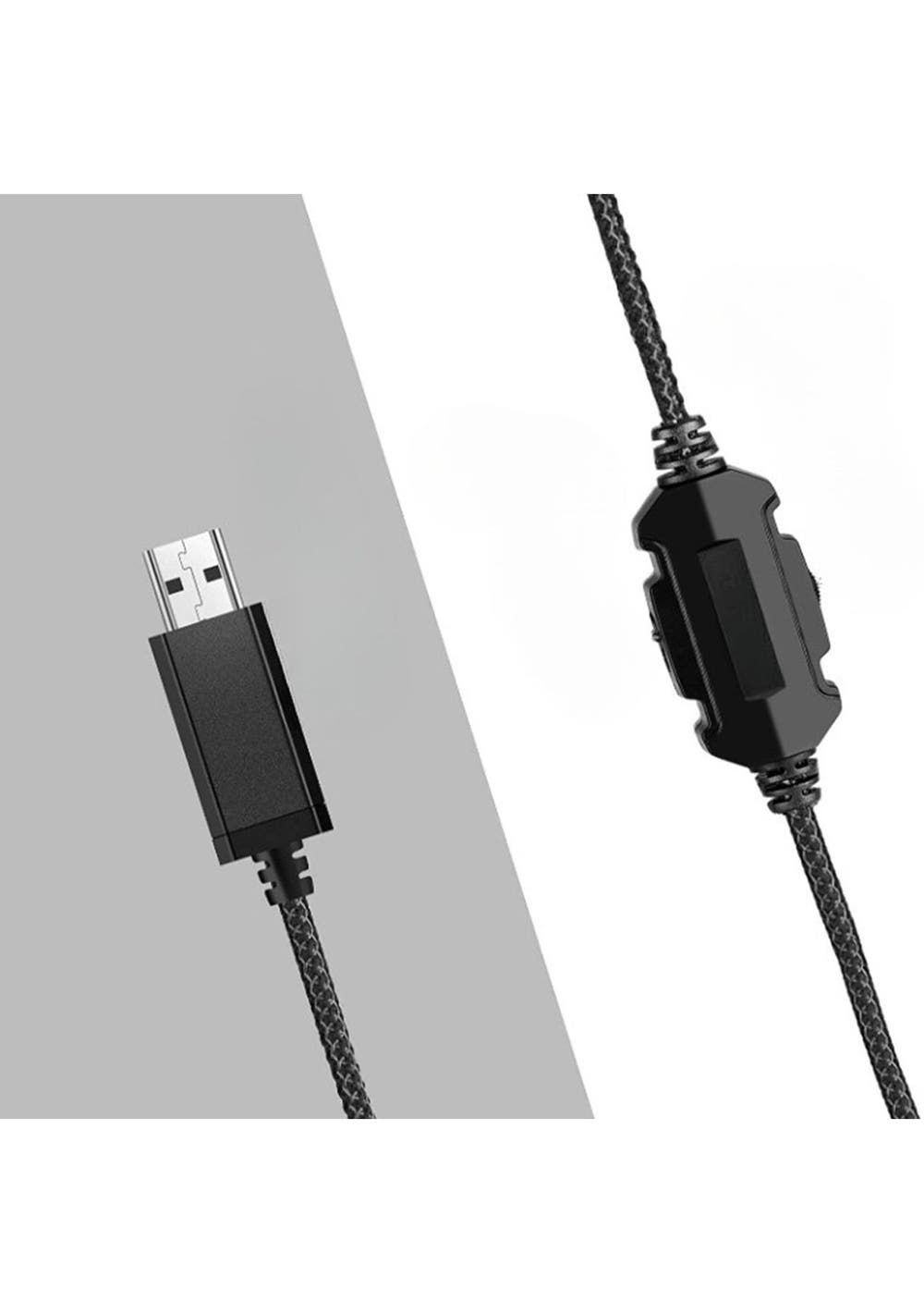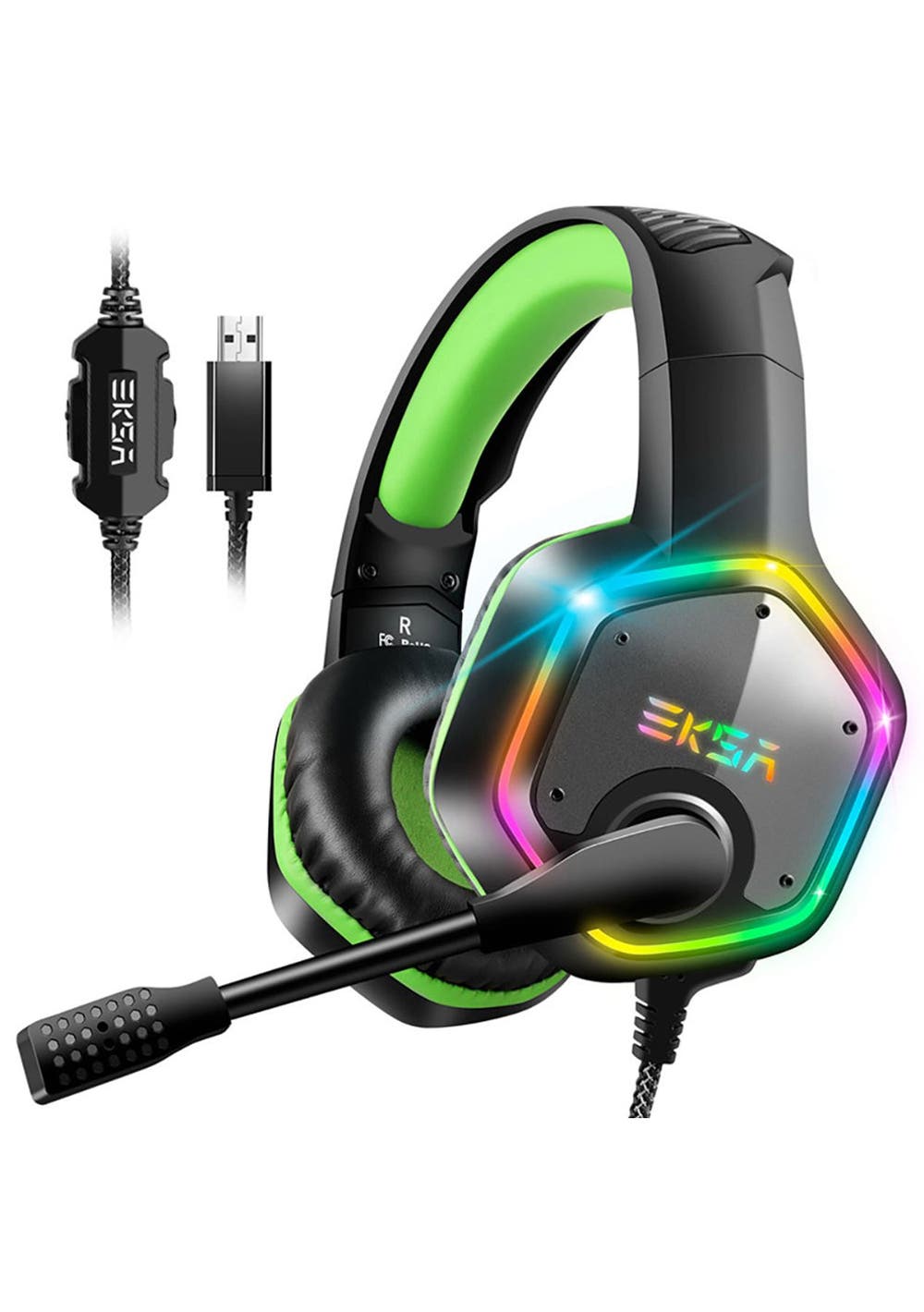Product Description: Professional gaming headset for PC gamers, compatibility with PC (Win 7, Win 8, Win10), PS4 Console, laptops, and other devices with USB audio port.?Gaming headset equip built-in USB audio sound chip with 7.1 surround sound. Combine with 50mm magnetic neodymium driver, create an immersive gaming experience with stereo surround sound in the game. No driver required, very easy and convenient to use.?Highly sensitive microphone with omnidirectional noise reduction tech, reduces distracting background noise, to collect your voice clearly. easy-to-use volume adjustment and one key Mic mute switch, easy for your game operation. And noise-cancelling microphone guarantee loud & high-quality voice talks in game or online chat.?Designed for all-day comfort. With soft memory protein earmuffs on both sides, you won't feel any discomfort while wearing this 7.1 gaming headphones even for long time gaming. The headband was designed for balanced weight distribution and reduced clamping force to maximize comfort during lengthy gaming sessions.?Product Specification:Color: Grey, GreenWeight: 630gMaterial: ABSSize: 21.5 x 20.5 x 10 cmCable Length: 2.2MSpeaker Diameter: 50mmHeadset Jack: USBPower Supply: USB Plugged-InFunction: Gaming Headset with Noise Canceling Mic & RGB LightPackage Inclusion:1 x Gaming Headset1 x User Manual