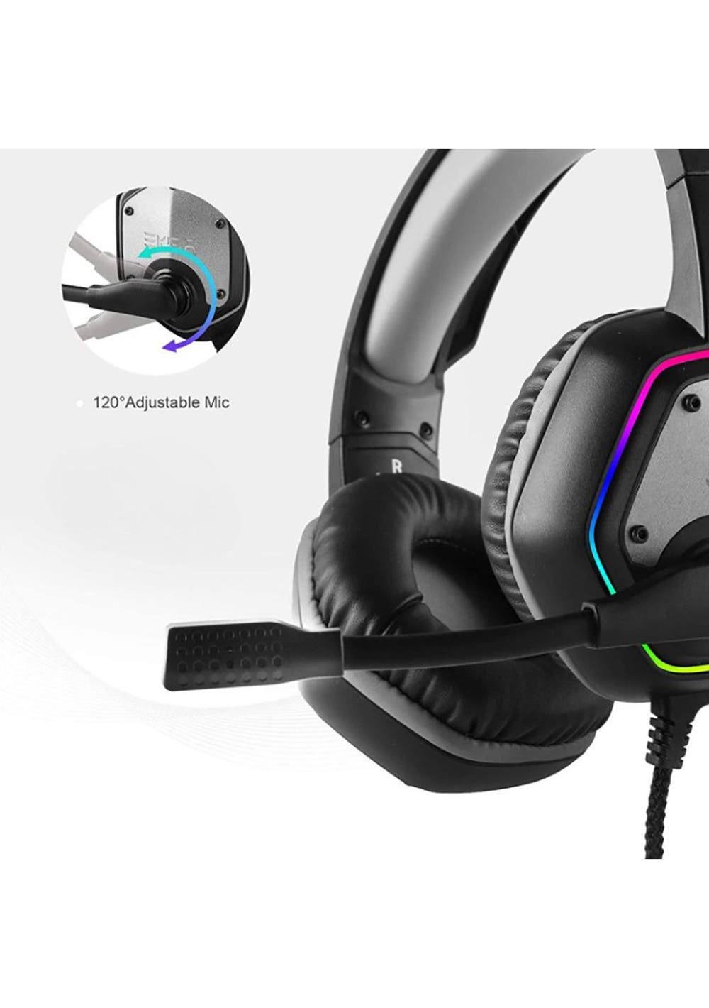 7.1 Surround Sound Gaming Headset with Noise Canceling Mic & RGB Light - USB Plugged-In - Grey