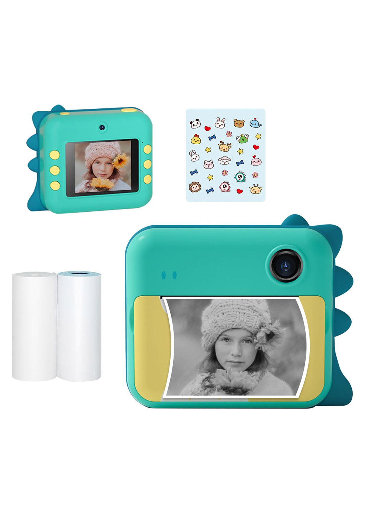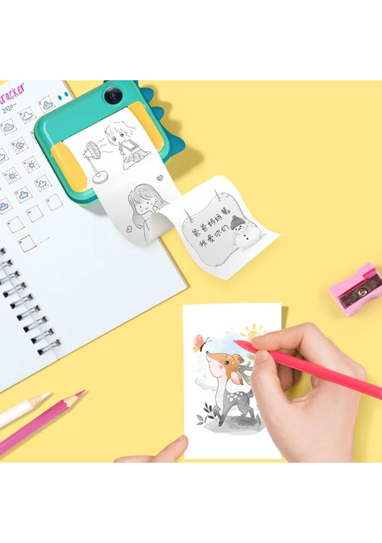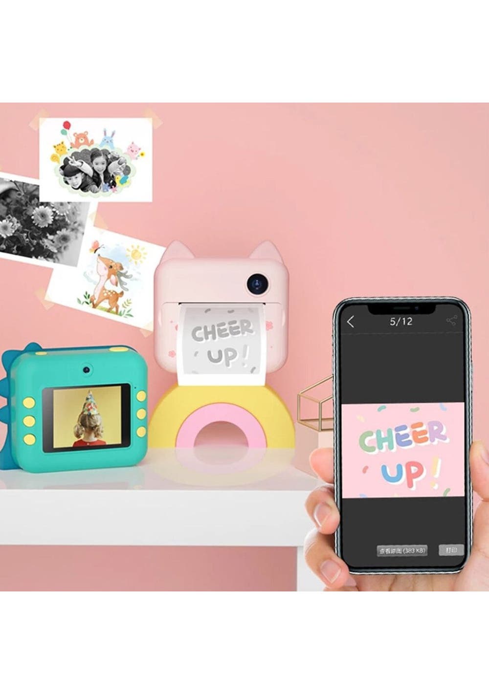 Product Description: This instant camera for kids uses thermal printing which requires zero ink. Just put the printing paper included in the kit into the camera and kids can start to take photos and print them. It takes around 10 seconds to print a photo.This kid s instant camera is equipped with a 1500mah rechargeable battery which allows kids to take photos or videos continuously for 1-3 hours. It can accommodate up to 32GB of memory card which can store up to 2,600 photos.This instant print camera has filters and 13 cartoon frames and a selfie function to provide more fun to kids. It s a great gift option for kids for their birthday, Christmas, and other holidays.Photos and videos in the camera can be sent to a cellphone by the APP BiBi Cam and also can be connected to the PC with a USB cable to transfer photos and videos.?Product Specification:Variant: Cat, DinosaurMaterial: ABSSize: 90x80x40mmWeight: 175gFunctions: Children CameraPixels: 12 Million Pixels front and rear dual camerasPhoto format: JPGVideo resolution: support up to 1080PSupport Paper: Thermal Paper and Thermal StickersPrinting Resolution: 200 DPIPrinting Method: Thermal Black and WhiteScreen Size: 2.4 in IPS ScreenUsage Time: 1-3 hoursCharging Time: 4-5 hoursBattery Capacity: 1500 mAhInput Voltage: 5V 1A?Package Inclusion:Kit:1 * Camera1 * USB Cable2 * Rolls of Paper?Paper only:3 * Rolls of Paper ?