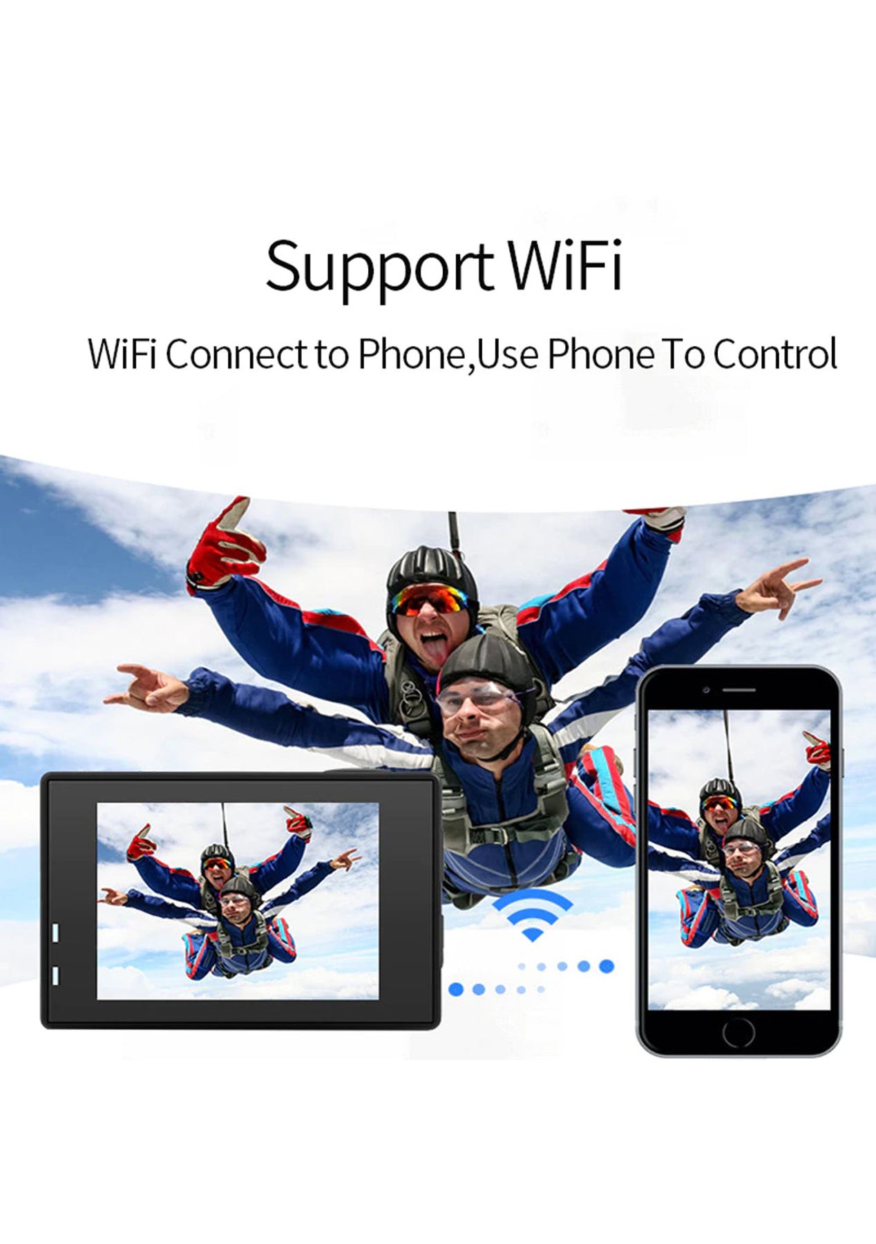 Product Description: This action camera is second to none with its 170-degree ultra-wide-angle lens that supports 4K video recording. This submersible sports camera is made of professional-grade waterproof material (equipped with waterproof housing), it can shoot less than 98.4ft underwater and comes with sports accessories.This waterproof camera supports mobile phone and tablet Wi-Fi control, so you can record in real-time. It has a unique square-format front panel pattern with a robust design and is also scratch-resistant.The camera is equipped with a 900mAh high-capacity lithium battery. The long-lasting battery allows you to better enjoy the fun of recording. It supports a variety of charging methods, you can connect the computer and the power adapter to charge, you can also charge through the car charger. The charging time only needs 1 - 2 hours and can last around 90 minutes.This 4K compact action camera supports photography and camera mode. At the same time, it supports a variety of video recording formats 4K/1080/720P, etc. At the same time, it supports loop recording, motion detection, screen rotation, car mode, etc.?Product Specification:Color: BlackMaterial: ABSSize: 60.5*43.7*26.8mmWeight: 1kgFunctions: Action CameraUsage Time: 90 minutesCharging Time: 1- 2 hoursBattery Information: 900mAhLCD Screen: 2.0 inchLens: 170 wide-angleData Connection: Wi-Fi, USBCompression format: MJPEGOptical source frequency: 50 Hz / 60 Hz.USB: USB 2.0.Power?DC: 5V 1A.Energy consumption: 370 mA / 4.2 V.Recording time: 1080P/ 100 mins?Package Inclusion:1 x Motion Camera1 x Bicycle Stand2 x Helmet Mounts3 x Adapter Brackets1 x Fixed Seat1 x Adapter1 x Data Line3 x Bandages1 x Wipe Cloth1 x J-Seat1 x Hand Strap1 x Adhesive Tape 1 x User Manual