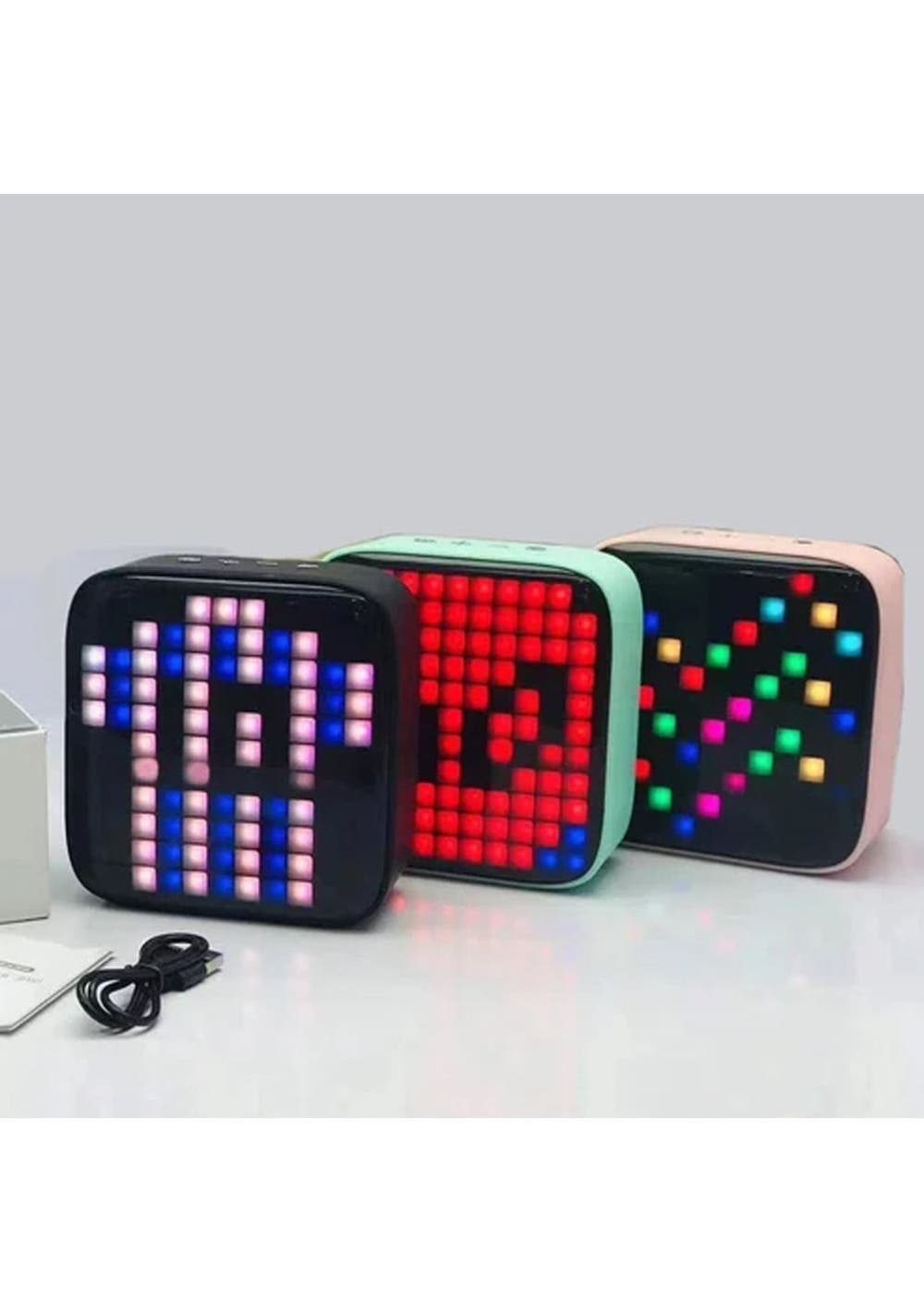 Product Description: This mini speaker adopts a Bluetooth connection, which enables a wireless playback function so your music is no longer limited by the cable. It has a 10-15m barrier-free transmission distance; you can freely enjoy music anytime, anywhere.It is equipped with two 1200mAh lithium batteries that are used in parallel, the standby time is about 25 hours, and it can work for 4-6 hours. It also has a charging time of up to 4 hours. The speaker has a flashing led light pattern on the screen. It is interesting that 121 square led lights composed of 11*11 will be combined into different patterns, and the music playback process is no longer monotonous. Some patterns fluctuate according to the rhythm of the music as if you are on the scene.This Bluetooth speaker is small in size but uses a 5W high-power external amplifier unit, which can release surprising sound and clear sound quality to fill the room, suitable for different occasions. The Bluetooth speaker is made of high-quality ABS, which is durable and can be used for a long time. And there are three colors to choose from, pink, green and black, making your life full of joy.?Product Specification:Color: Black, Green, PinkMaterial: ABSSize: 130 x 130 x 63 mmWeight: 487gFunction: Portable SpeakerCharging Time: 4 hoursUsage Time: 4-6 hoursBattery Information: 2400mAhTransmission Range: 10-15m?Package Inclusion:1 x Portable Speaker 1 x USB cable?