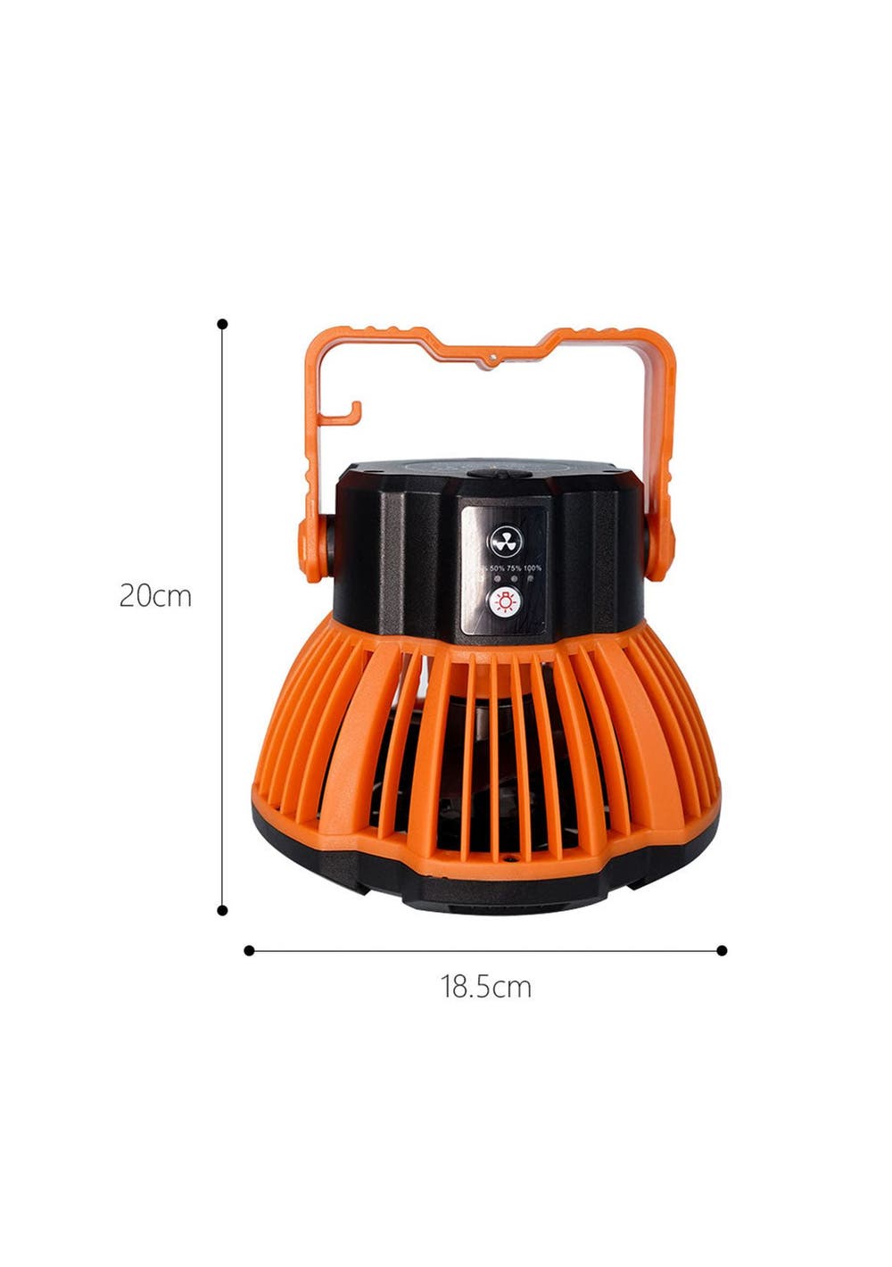 Product Description: 2-IN-1 Camping Lanterns, the battery powered fan is designed to incorporate a cooling fan, a high lumen camping light. Perfect for camping, hiking, adventure, hunting, home, office, garage, power outages, storms, repairs, factories, hurricanes, car trips, barbecues, gardens' party and other indoor & outdoor activities.?Remote control camping fan light, this tent fan has 3 fan speeds and 3 brightness settings to meet your different needs. Not only can it be operated through the buttons on its body, but it can also be operated simply and conveniently through the infrared remote control. ?Rechargeable battery powered fan, this cordless camp fan for tents has a built-in rechargeable 5200mAh Lithium battery that can be charged with a USB cable (included). It can work continuously 6-15 hours after one full charge. ?Strong & Quiet, 180 c Rotation, this USB fan camping adopts latest noise reduction brushless motor to provide powerful airflow to keep you cool on hot days. The noise is less than 23dbs, allowing you to sleep or work undisturbed. The fan head can be manually rotated with 180 degrees, allowing you to get cool air flow from different directions.?Foldable Hook & lightweight, designed with a foldable compact size (23.5 x 16.8cm) and a weight of only 15.8 ounces, this outdoor tent fan can easily fit into a backpack or suitcase and carry around. With handle and hook, it is convenient to hang in tents, branches or cars, or can be placed on a desk in the office or at home. Made of durable PP material, it is sturdy and drop resistantProduct Specification:Color: BlackWeight: 460gMaterial: PlasticSize: 23.5 x 16.8 cmPower Supply: USB RechargeableBattery Information: 5200mAhCharging Time: 5 - 8hWorking Time: 6 - 15hFunction: Portable USB Rechargeable Camping Fan?Package Inclusion:1 x Camping Fan1 x USB Charging Cable 1 x Remote Control 1 x User Instruction