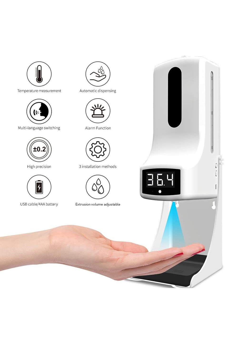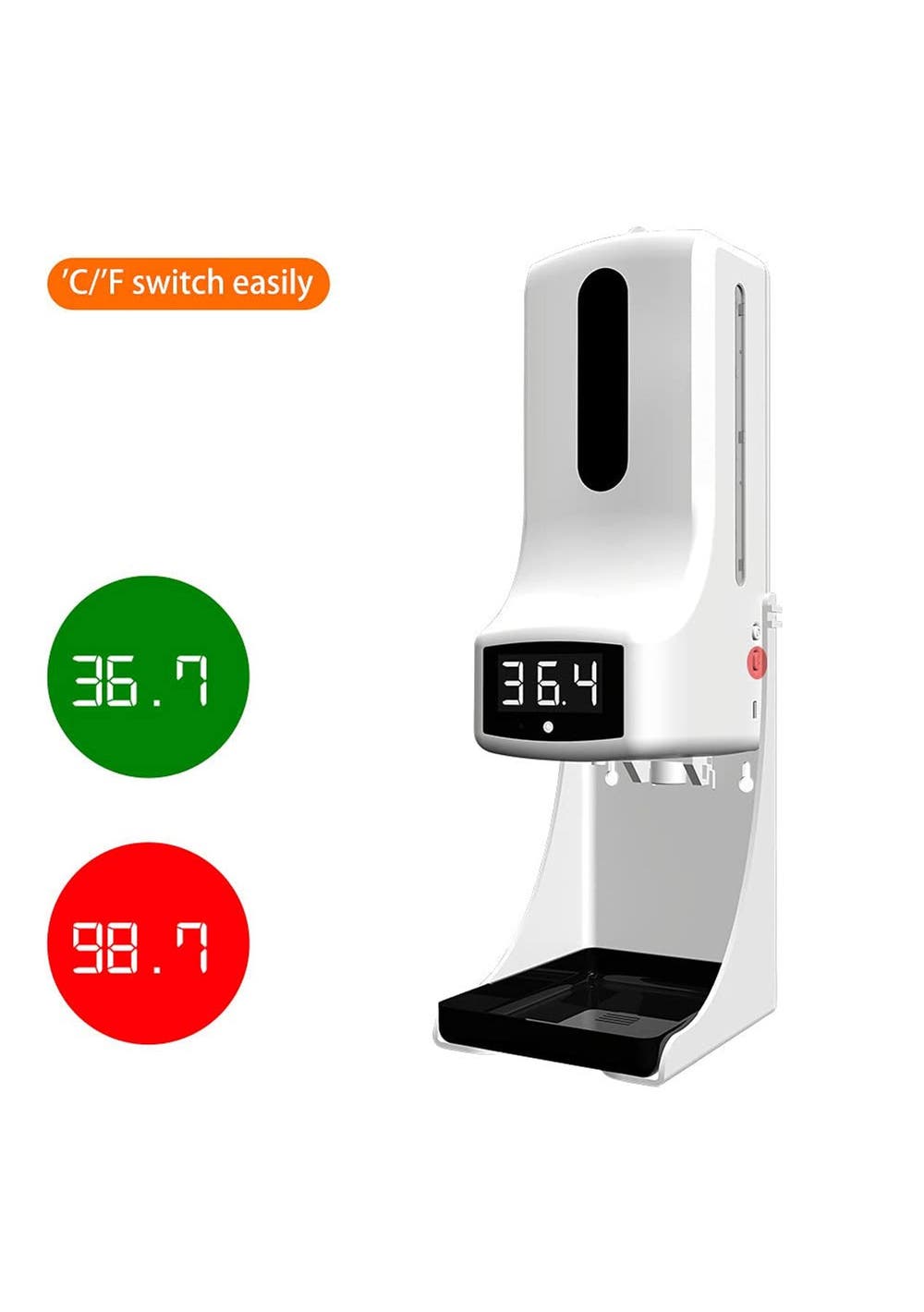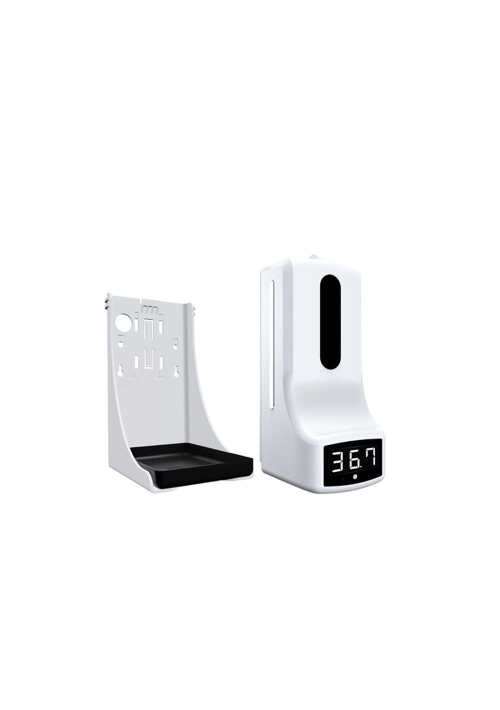Product Description: This is a 2-in-1 infrared thermometer and automatic soap dispenser. It comes with temperature measurement and disinfection function right in the palm of your hand. It is also equipped with a backlit LCD digital display for clear reading.The innovative high-tech infrared sensor can measure safely and quickly in 500 milliseconds and comes with an optical fault detection warning and optical abnormal temperature warning.It comes with a fever alarm function, when the temperature is abnormal, the red backlight and buzzer will alert the patient.Fahrenheit or Celsius temperature unit conversion can be used comfortably for different people. It is a lightweight infrared forehead thermometer, no need to hold. It can be hung, mount using double-sided tape, or mount using a fixed bracket.The high-capacity dispenser can accommodate up to 1000ml of liquid and can be used for hand sanitizers or alcohol, making it more convenient to use. It has a light energy-saving function and automatic power-on function to save power and battery.?Product Specification:Color: WhiteMaterial: ABSSize: 119X133X280mmWeight: 952gFunctions: Temperature & Disinfecting MachinePower Supply: 4 * AA Battery (not included), USBWorking temperature: 10¬°√¶?~40¬°√¶?(recommended 15¬°√¶~35¬°√¶)??????Accuracy: 1+-0.2C (34-45C) Place in the operating environment for 30mins before using Measuring range: 0~50¬°√¶?????????????Response time: 500ms??Standby mode: 5S standby during non-working time, red dot dynamic cycleCapacity: 1000mLAlarm Type: Flashing, Beeping (DIDIDIDI)LED Display: NumberAlarm Temperature: AdjustableProduct Power: 5WLiquid Type: Spray ?Package Inclusion:1 * Temperature & Disinfecting Machine1 * Bracket1 * Screw Set1 * USB Type C Cable1 * User Manual ?