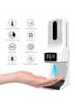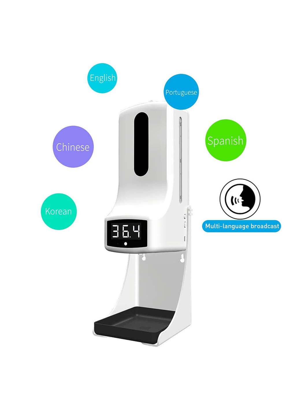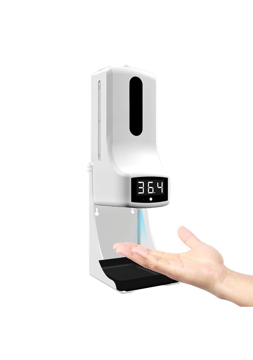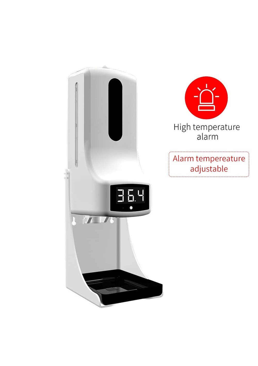 Product Description: This is a 2-in-1 infrared thermometer and automatic soap dispenser. It comes with temperature measurement and disinfection function right in the palm of your hand. It is also equipped with a backlit LCD digital display for clear reading.The innovative high-tech infrared sensor can measure safely and quickly in 500 milliseconds and comes with an optical fault detection warning and optical abnormal temperature warning.It comes with a fever alarm function, when the temperature is abnormal, the red backlight and buzzer will alert the patient.Fahrenheit or Celsius temperature unit conversion can be used comfortably for different people. It is a lightweight infrared forehead thermometer, no need to hold. It can be hung, mount using double-sided tape, or mount using a fixed bracket.The high-capacity dispenser can accommodate up to 1000ml of liquid and can be used for hand sanitizers or alcohol, making it more convenient to use. It has a light energy-saving function and automatic power-on function to save power and battery.?Product Specification:Color: WhiteMaterial: ABSSize: 119X133X280mmWeight: 952gFunctions: Temperature & Disinfecting MachinePower Supply: 4 * AA Battery (not included), USBWorking temperature: 10¬°√¶?~40¬°√¶?(recommended 15¬°√¶~35¬°√¶)??????Accuracy: 1+-0.2C (34-45C) Place in the operating environment for 30mins before using Measuring range: 0~50¬°√¶?????????????Response time: 500ms??Standby mode: 5S standby during non-working time, red dot dynamic cycleCapacity: 1000mLAlarm Type: Flashing, Beeping (DIDIDIDI)LED Display: NumberAlarm Temperature: AdjustableProduct Power: 5WLiquid Type: Spray ?Package Inclusion:1 * Temperature & Disinfecting Machine1 * Bracket1 * Screw Set1 * USB Type C Cable1 * User Manual ?