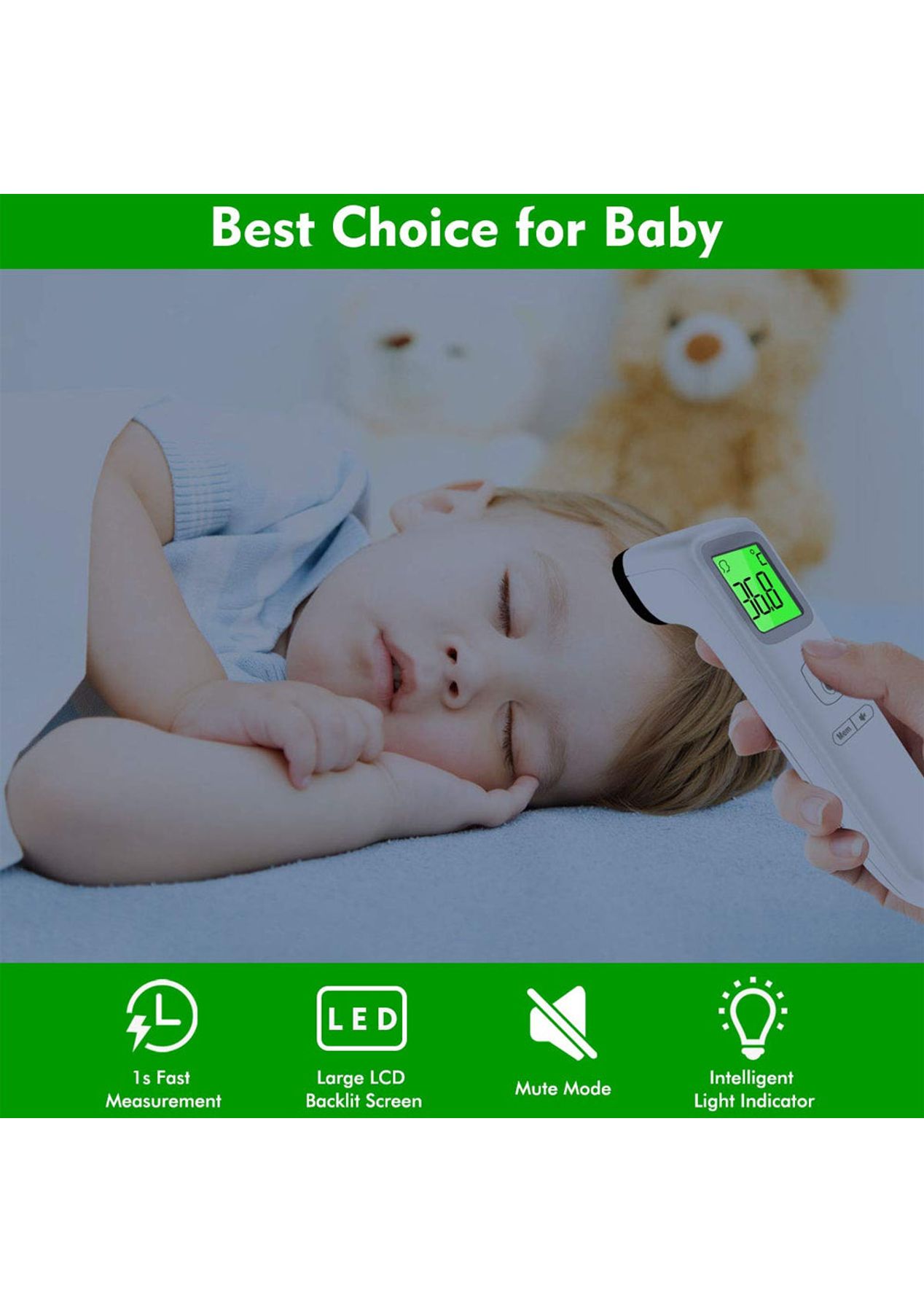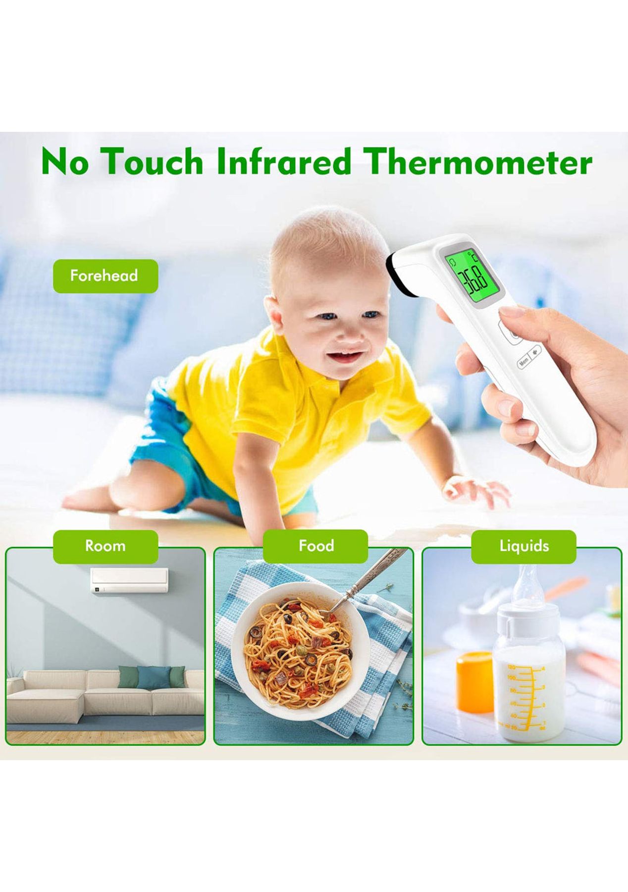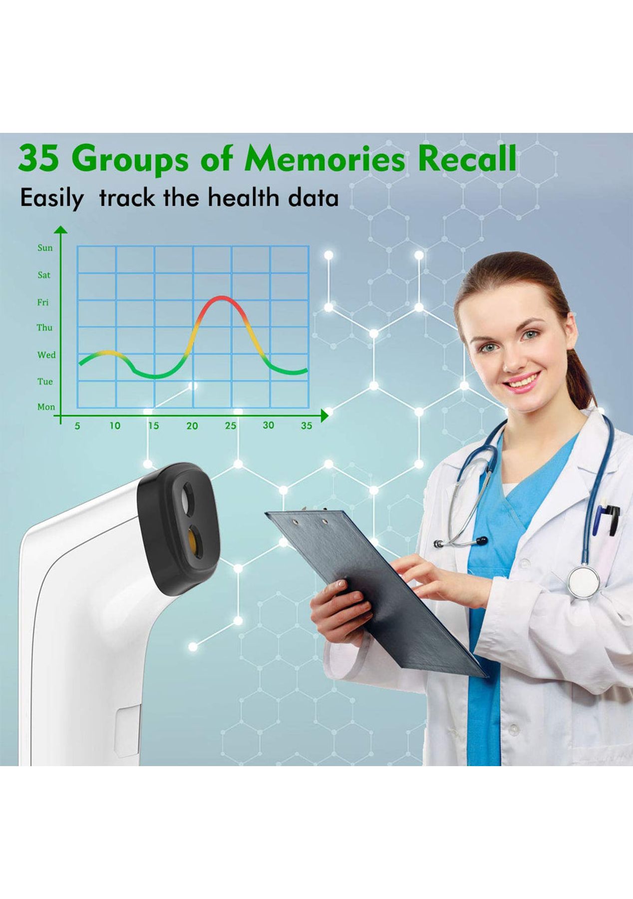 Product Description: The measurement distance between the thermometer and the forehead should be 1 to 1.2 inches. It is a non-contact thermometer, it is safe and hygienic to avoid cross-infection. It is actually more convenient than the standard mercury thermometer and touch thermometer.This body?thermometer is equipped with an exceptionally high sensitivity sensor, it has been clinically tested, provides accurate temperature readings without failures in 1-3 seconds.Our thermometer can be used at night without turning on the light. The result of the LCD screens is clear and easy to read. This digital infrared thermometer?is?equipped with a fever alarm system. Green / red backlight display to indicate fever. Green for normal, red for fever.This?fever body thermometer can store 35 readings to continuously track your family member's temperature. You can handle it in advance if the temperature of your family members is slightly high.The?digital thermometer is designed for adults, babies, and the elderly. It not only supports the forehead function. It can change the measurement mode at any time to take the object's temperature easily.?Product Specification:Color:?WhiteMaterial:?ABSSize:?36*42*153.5mmWeight:?81gFunctions:?ThermometerBattery Information:?2 * AAA (not included)?Package Inclusion:1 * Thermometer1 * Storage Bag1 * User Manual