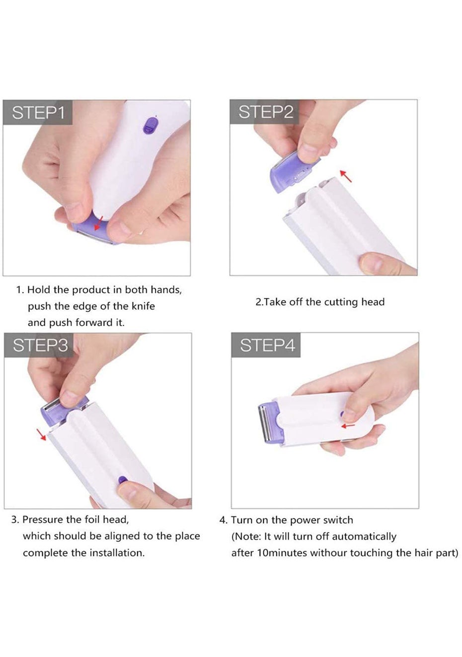 Features: COMPLETELY PAINLESS: The razor blade is made of anti-allergic materials and does not directly contact the skin. Through the use of Sensa-Light, it only works when the light touches the skin and deactivates after 6 seconds when the light is removed. SAFE: With interchangeable heads, you can choose which head to use according to the type of hair you want to trim. Ideal for full body hair removal for men and women. EFFICIENT: This product is using Micro Oscillation, so even the shortest hair (up to 0.5 mm) can be gently removed from the roots, and the hair will become shorter before being pulled out. RECHARGEABLE LI-ION BATTERY SHAVING INSTRUMEN: Easy to carry, small in size, light, and compact. Can be cleaned after each use. ?DERMATOLOGICALLY RECOMMENDED: Perfect for sensitive skin, this epilator is suitable for peach hair loss on cheeks, chin, and upper lip. It can also be used on the neck, arms, armpits, legs, eyebrows, or private parts of the body. Functions:1.???????Painlessly eliminates unwanted hair on the body parts such as the face, arms, legs, and bikini lines with ease without razor blades or messy chemicals.2.???????The hair remover includes a trimmer head attached to it and a micro foil head. The trimmer (mower) head works best on longer hair and the micro foil (micro-grid) head works best on the hair stubble or any short hair not removed by the trimmer head.3.???????Has ¡°Sleep¡± function: Automatically deactivates 6 seconds after you remove the Sensa-Light head from your skin and it reactivates once light touches your skin.Specification:Type: EpilatorMaterial: ABSSize: 120*48*17mmGender: UnisexInput Voltage (V): AC 100-240V 50-60Hz?Package Inclusion:1x touch epilator1x power adapter1x brush1x laser head1x USB power cord