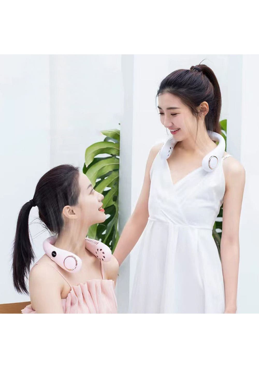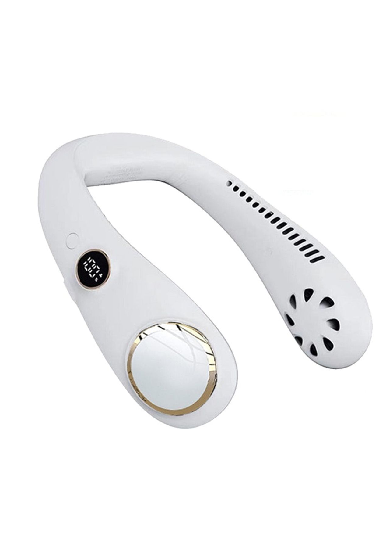 Portable Leafless Digital Hanging Neck Fan-USB Rechargeable - White