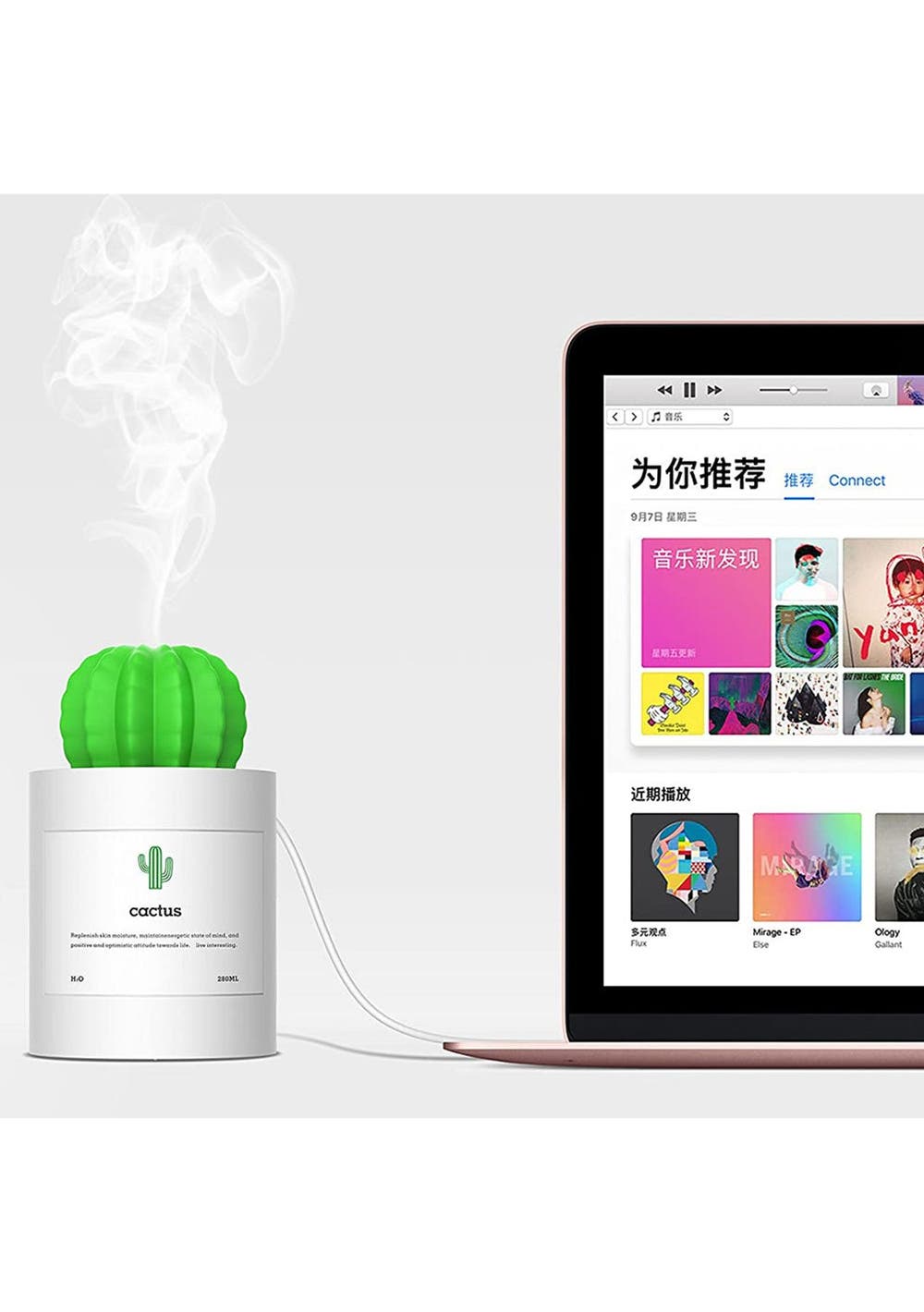 Product Description: Cute cactus designs interface. One-button touch switch makes the operation very easy. Small enough to easily fit into a coat pocket, let alone in your luggage.?Most hassle-free, worry-free, trouble-free, and portable personal humidifier on the market today. Insert small end of the small humidifier stick V2 downward into water bottle. Press on the switch to open the mist mode. This humidifier can hold up to 280ml of water.?It can soften and moisten dry and chapped skin in winter. Use as mister during summer or hot weather. Or even as a moisturizer for your hands by holding hands over mist. It also helps you breathe better when you are sleeping with air conditioner on.?Suitable for car baby bedroom office home study yoga spa to help you enjoy the peace of life.?Wonderful Christmas or birthday gift for relatives, friends, teachers and classmates.?Product Specification:Color: White, Grey, PinkWeight: 350gMaterial: PlasticCapacity: 280mlPower: 2WVoltage: DC 5VSpray: 50ml/hSize: 130 x 80 x 80 mmPower Supply: USB RechargeableFunction: USB Mini Cactus Humidifier?Package Inclusion:1 x Mini Humidifier1 x USB Charging Cable 1 x Humidifying Stick1 x Manual
