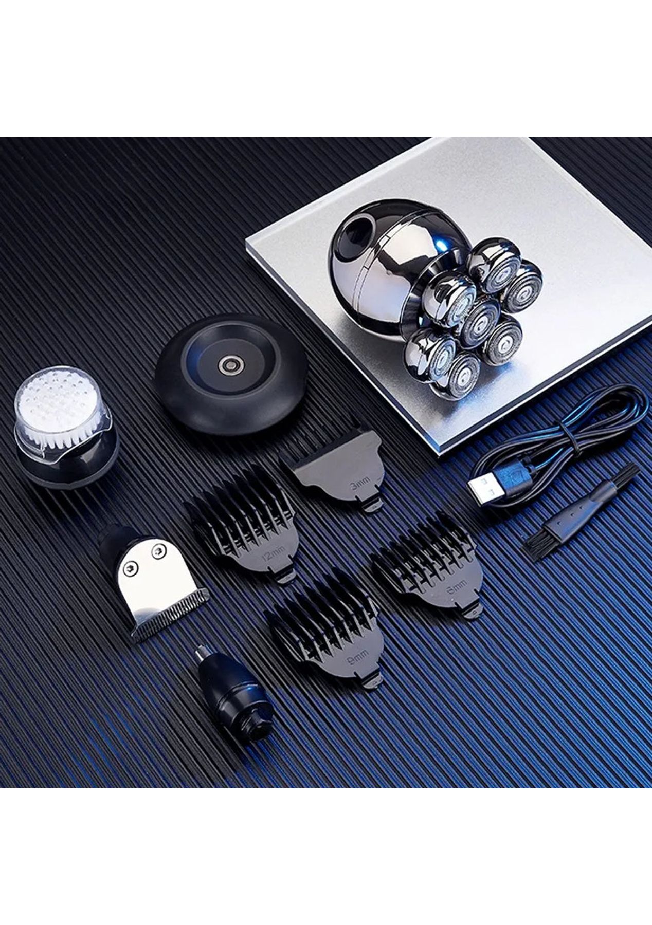 USB Rechargeable 7 Floating Heads Electric Shaver for Men - Black