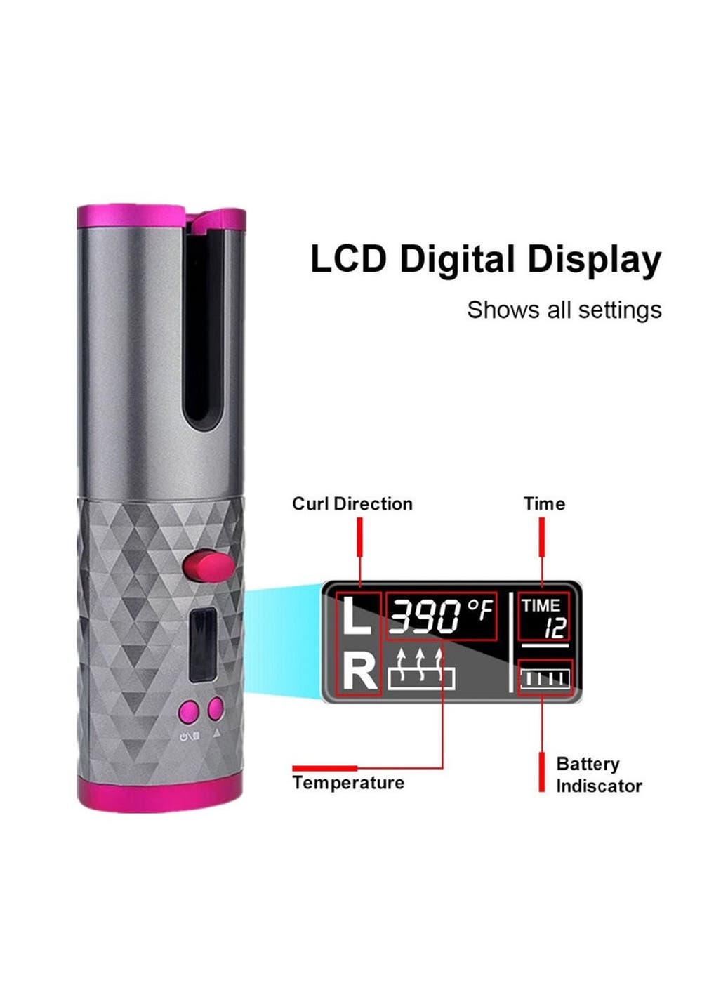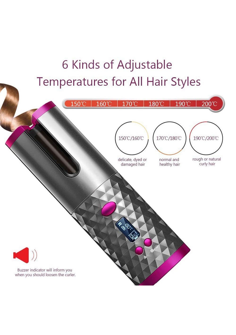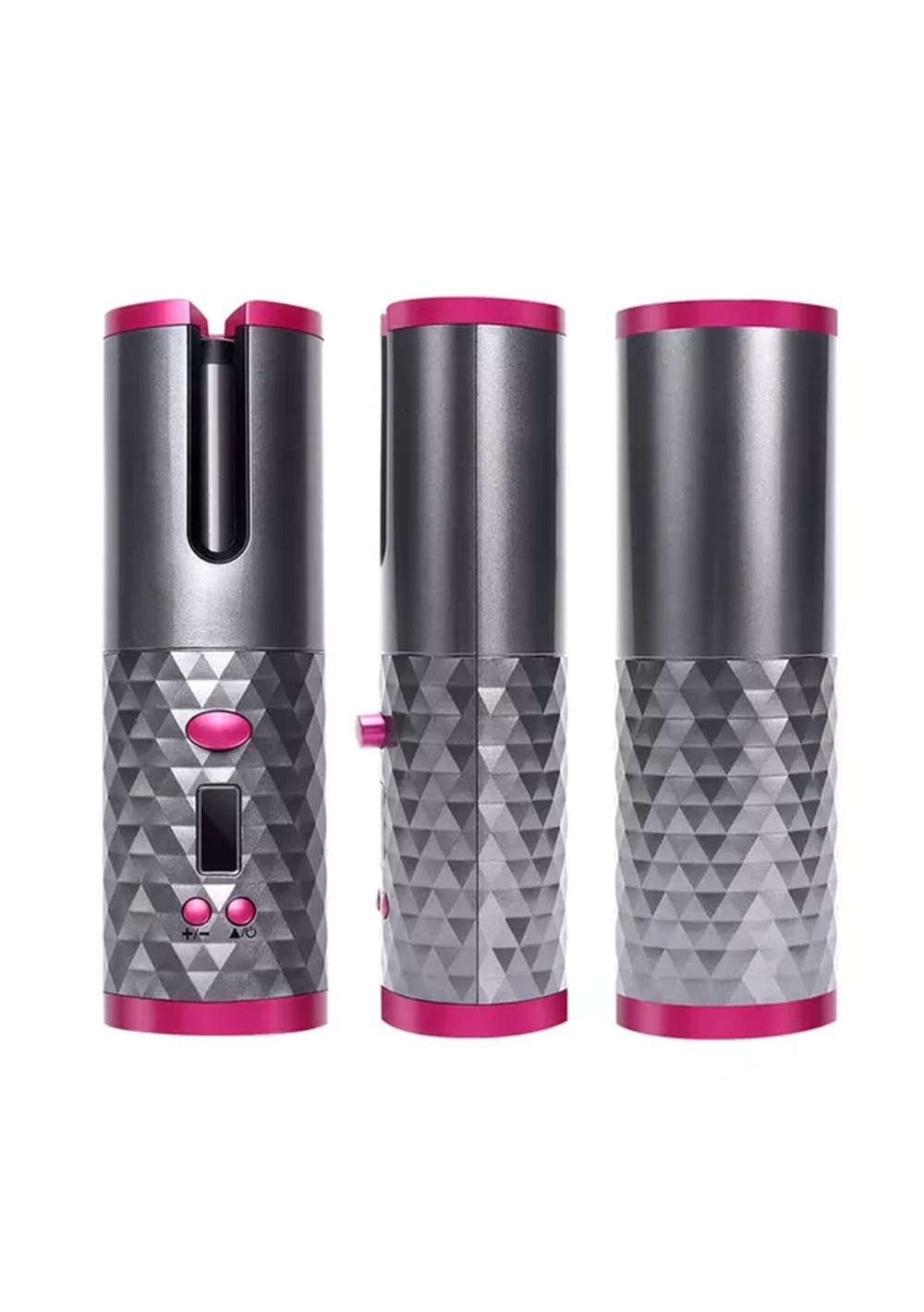 USB Rechargeable Auto-Rotating Ceramic Portable Hair Curling Iron - Pink