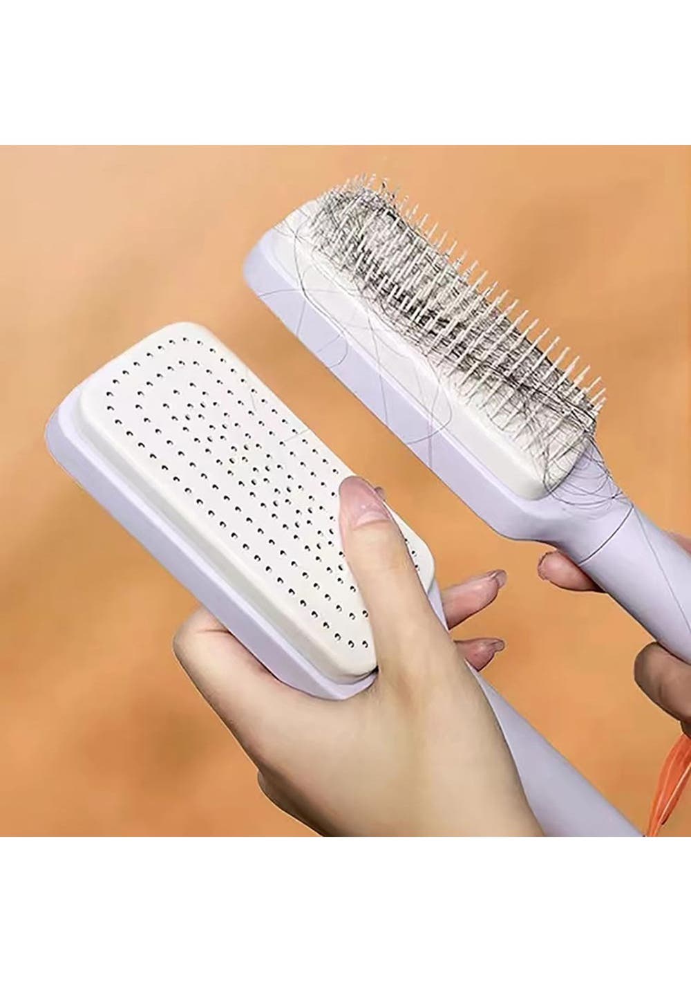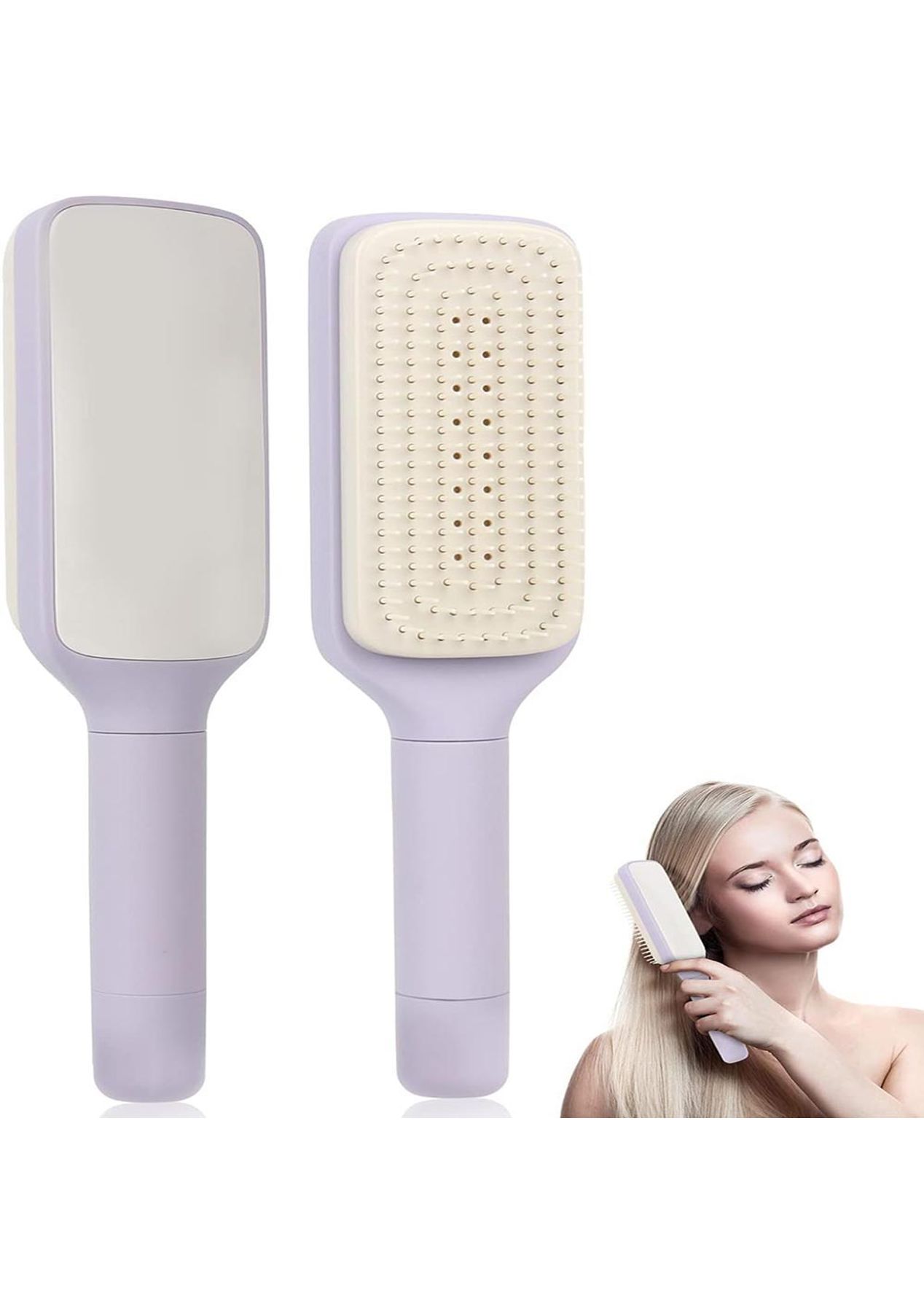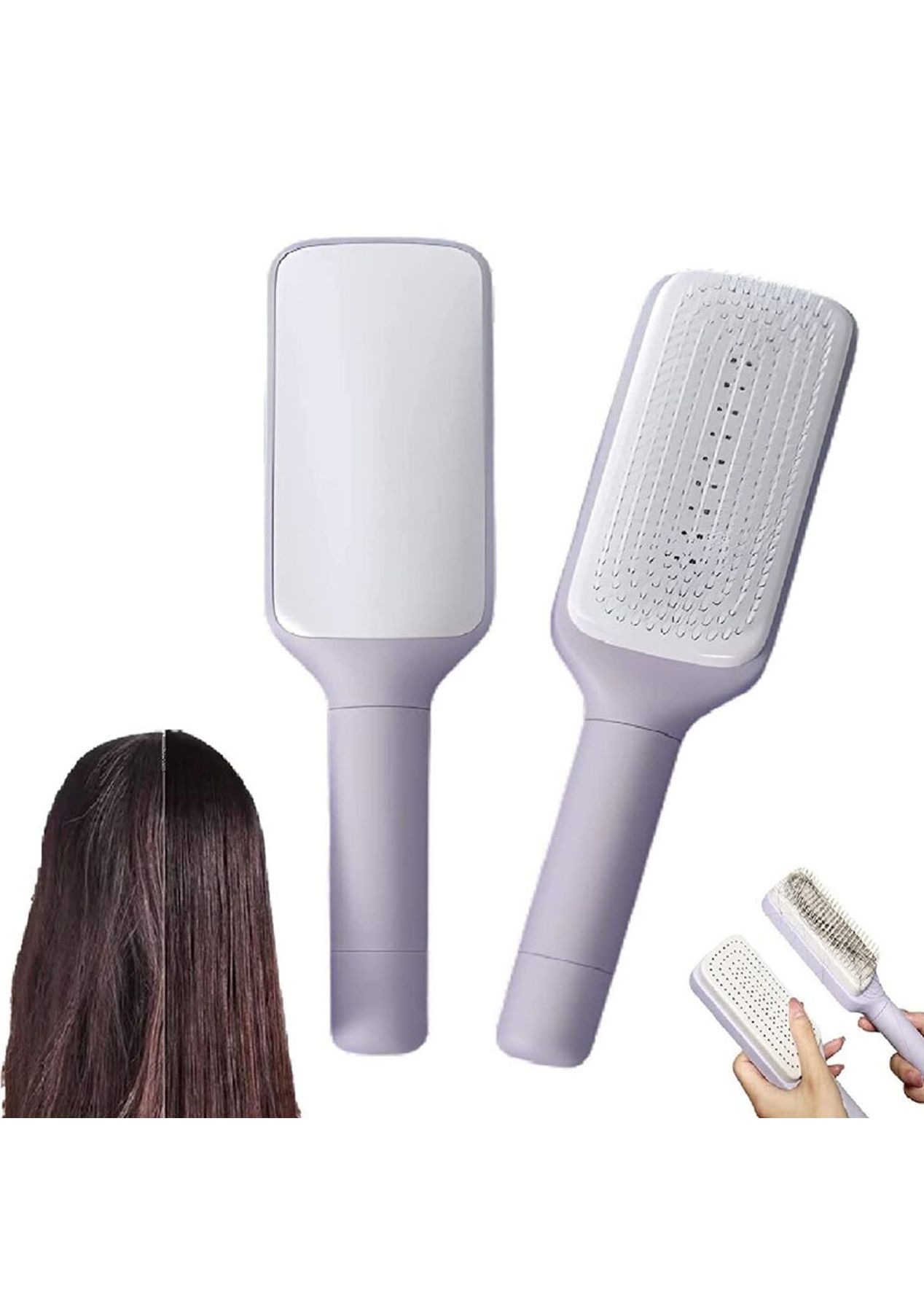 Product Description: Non-slip matte handle crafted from safe plastic ensures a comfortable and secure hold, providing effective control for hair styling without any sharp edges.Suitable for all hair types including straight, curly, thick, or fine hair, making it perfect for straightening, blow-drying, and daily grooming for men, women, and children.Soft tooth professional paddle brush promotes blood circulation, relieves stress, and enhances scalp and hair health for a comfortable experience.Rotatable handle allows for easy removal of residual hair, making hair combing quick, fun, and hassle-free, saving valuable time.Suitable for all ages and genders, this fashionable detangler brush is adored by everyone. Perfect for gifting on occasions like Valentine's Day, Halloween, Christmas, birthdays, and more.?Product Specification:Material: ABSColor: Gray, PurpleSize: 24 x 6 x 2.2cmWeight: 190gFunction: Self-Cleaning Hair Brush?Package Inclusion:1 x Hair Brush ?