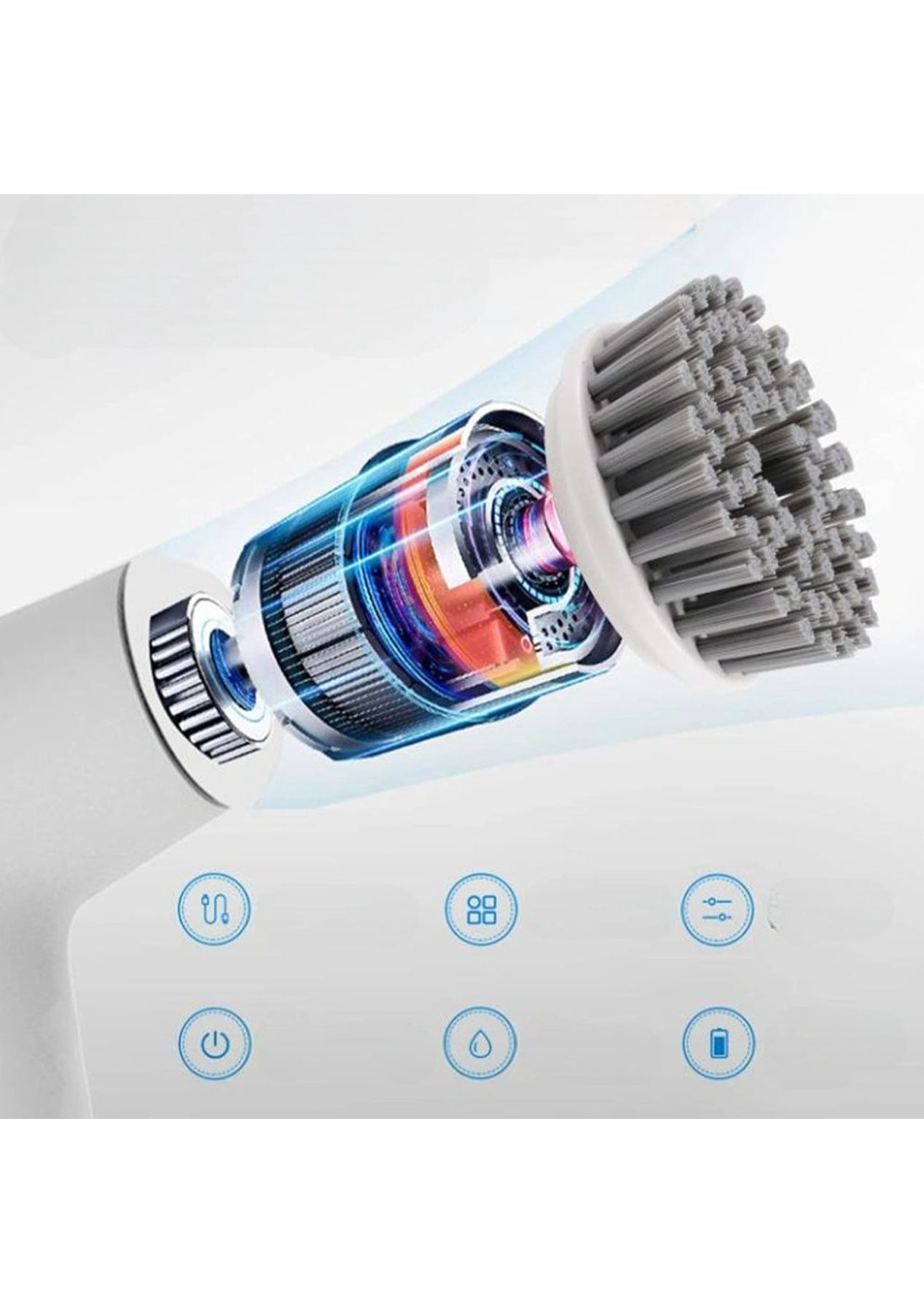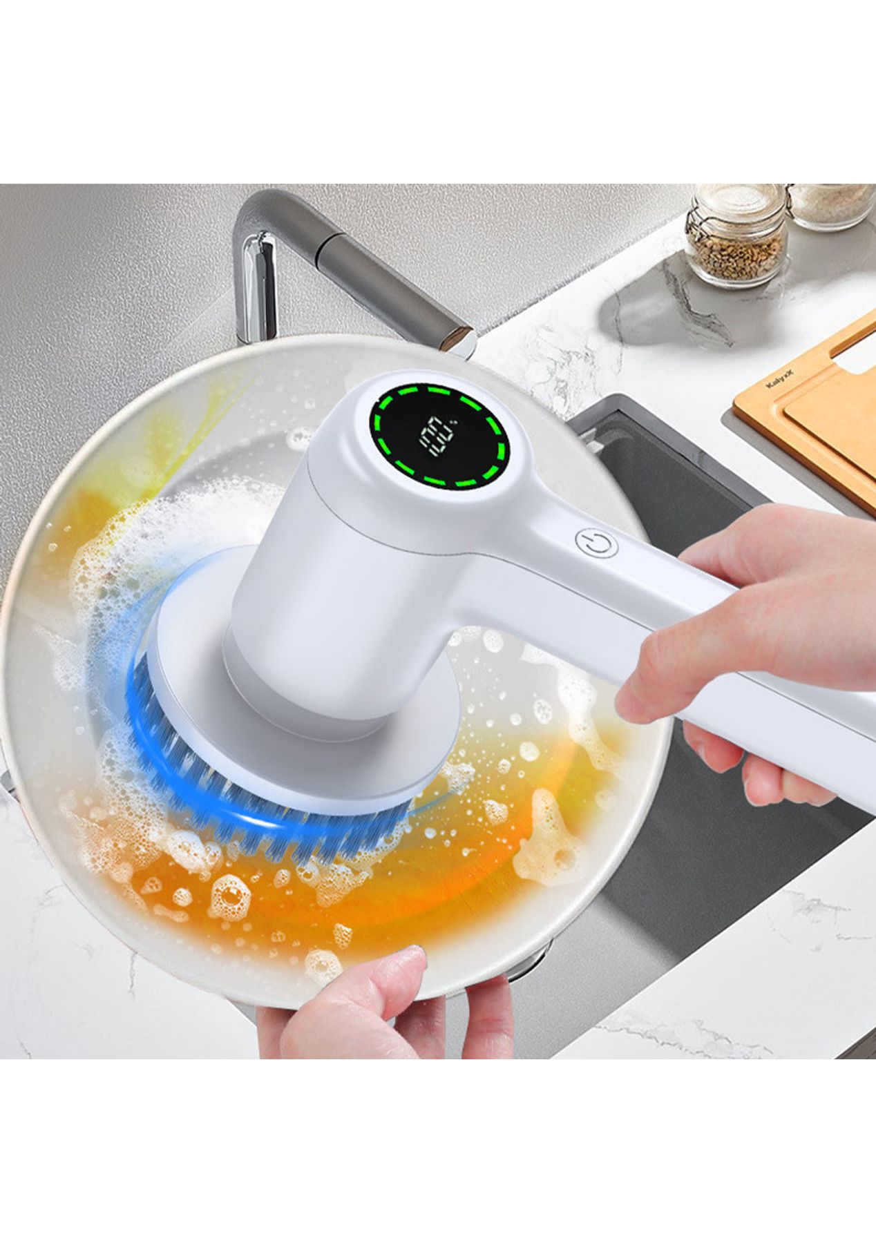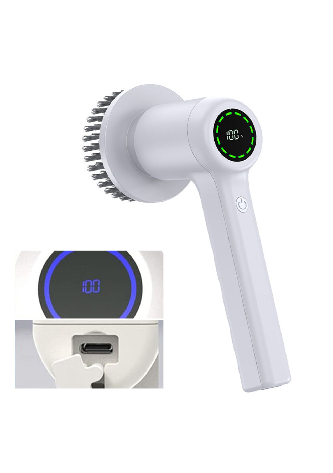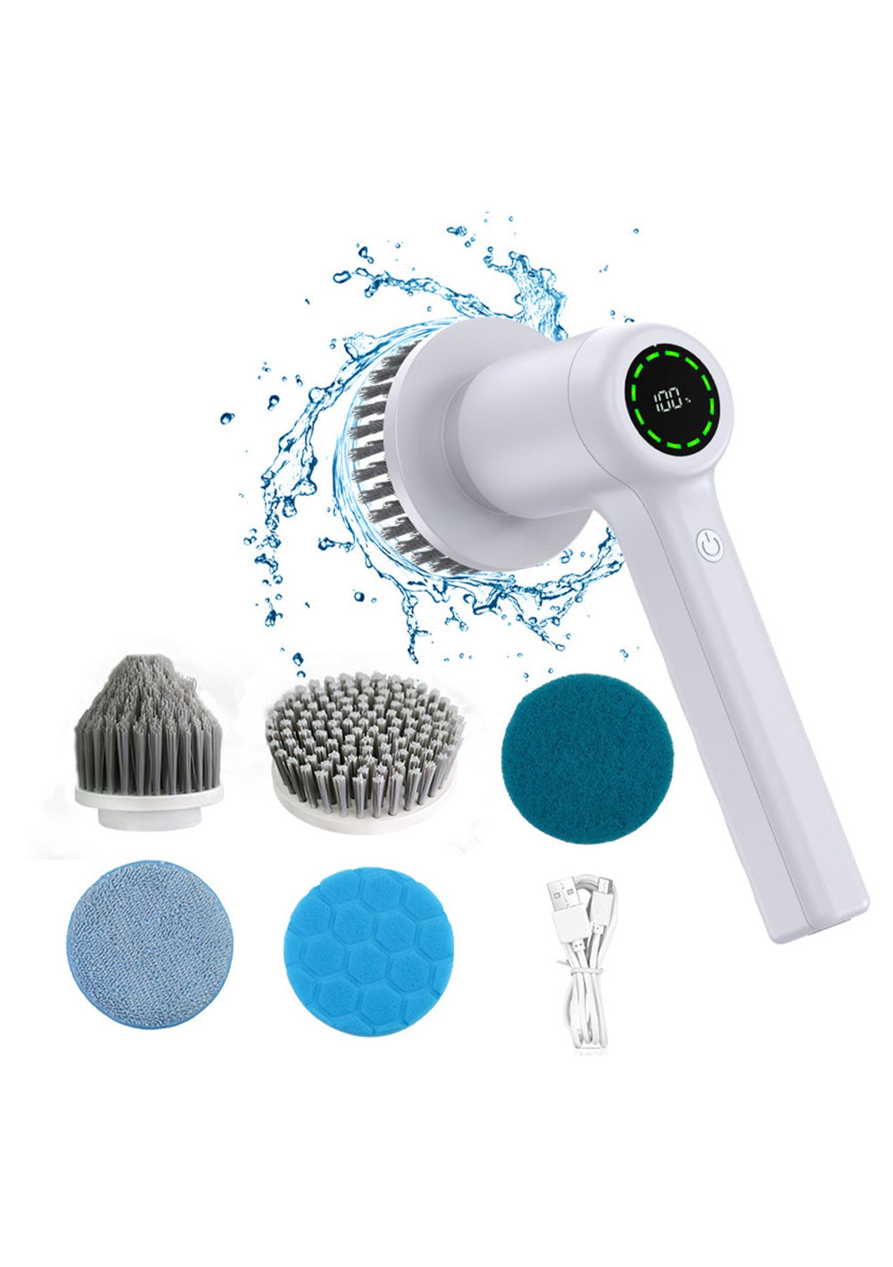 Product Description: Experience the power of this Portable Cordless Electric Spin Scrubber. Equipped with a high-speed Germany pure copper motor, this scrubber delivers efficient cleaning with two speed options: low speed (280RPM) for regular cleaning and high speed (350RPM) for tough stains. Say goodbye to stubborn dirt effortlessly.With 5 replaceable brush heads, this multifunctional cleaning brush provides versatility for all areas of your home. From bathroom tiles to kitchen surfaces, this power scrubber tackles any cleaning task with ease.Rechargeable and featuring an LED power display, this scrubber boasts a 2000mAh battery capacity and supports convenient type-C charging. Enjoy 1 to 2.5 hours of continuous usage after a full charge. The LED display keeps you informed of the remaining power, ensuring timely recharging.Designed with IPX7 waterproofing, this handheld cordless scrubber can be safely used even if it accidentally falls into water. Made from high-quality ABS materials, it is both durable and lightweight, weighing only 0.8lb, making it highly portable.Make cleaning easier and more effective with this electric scrubber brush. Whether you need a power grout scrubber, shower scrubber, drill brush power scrubber tool is the ideal choice for hassle-free cleaning. ?Product Specification:Color: WhiteWeight: 870gMaterial: PlasticSize: 15.5 x 26cmCharging Time: 2.5hWorking Time: 1-1.5hWaterproof Grade: IPX7Battery Information: 2000mAhPower Supply: USB-RechargeableFunction: Cordless Electric Spin ScrubberPackage Inclusion:1 x Electric Spin Scrubber1 x USB Charging Cable5 x Replacement Brush Heads1 x Manual