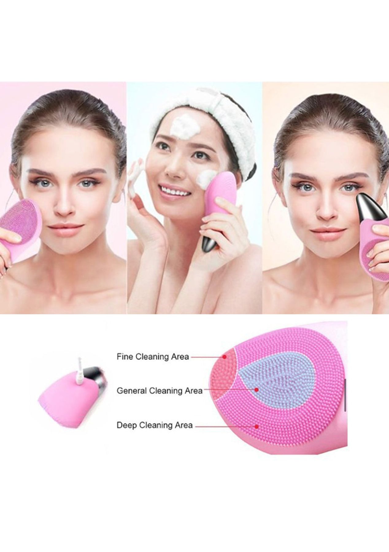 Electric Silicon Waterproof Facial Cleansing Brush and Massager - USB Rechargeable - Pink