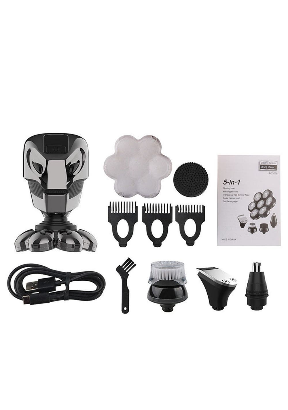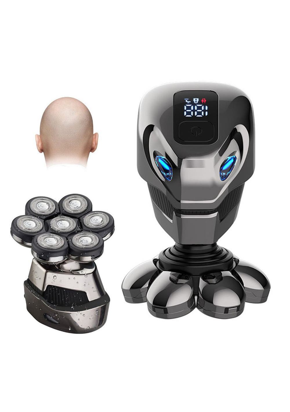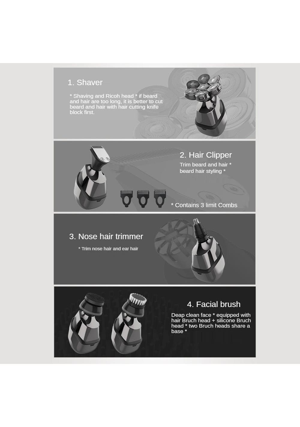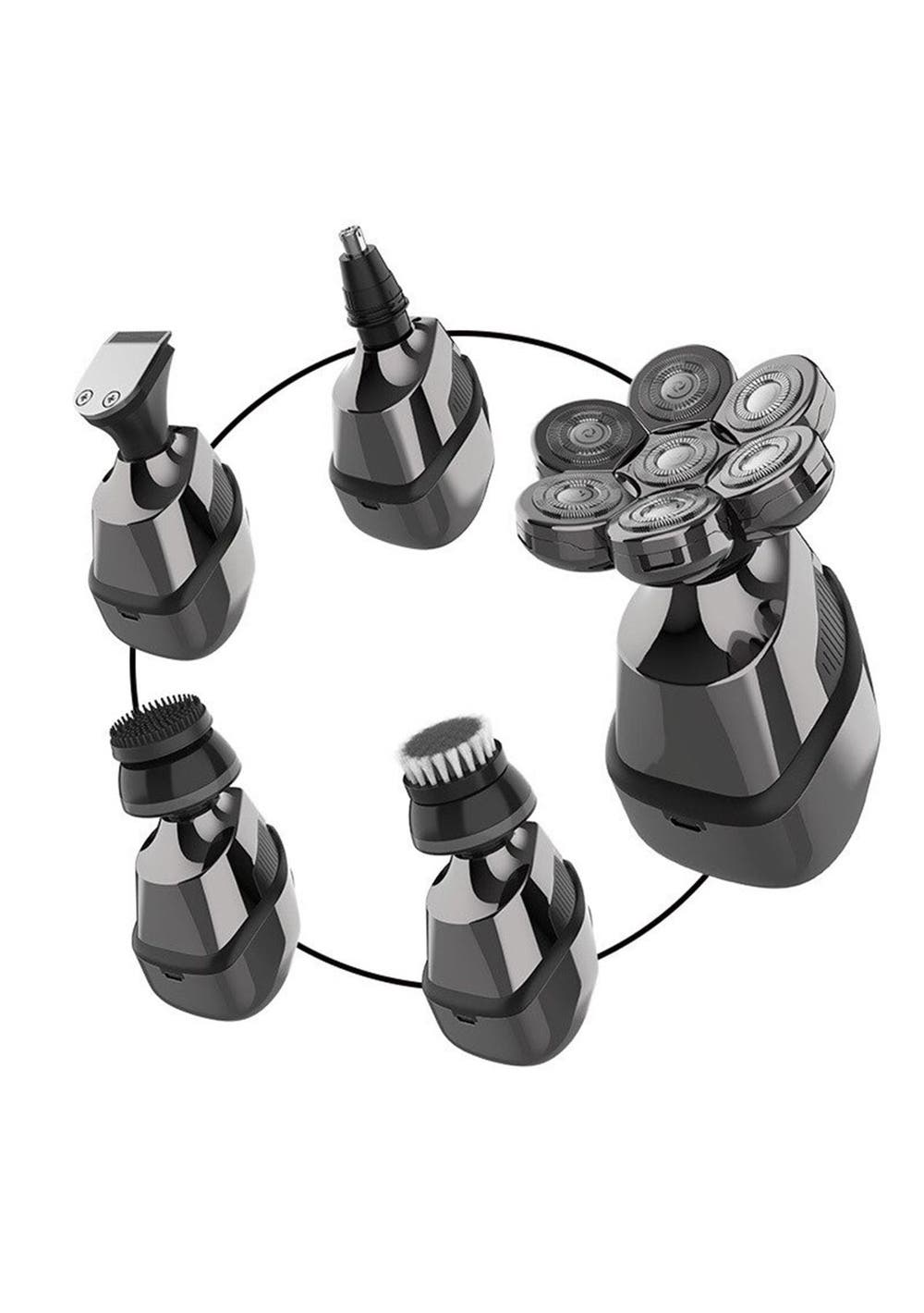Product Description: The modern man requires a modern head shaver to fulfill all his trimming options. Now, with this 5-in-1 hair trimmer for men, you will have the complete solution in the different areas of your body. The 7D Floating Blade Head is its most prominent feature; it is the upgraded version of 5-Blade / 6-Blade. The 7 Blade Floating Shaving System fits the contours of the face to accurately capture the long and short beards. The shaver comes with an ergonomic, modern design, with a classy metallic finish. It also has an intelligent digital display, and a one-key power-on to display the remaining time. Moreover, our male grooming device highlights a smart travel lock design to prevent accidental powering when traveling.? The shaver is equipped with IPX6 Waterproof technology allows you to shave wet with gel or foam for extra skin protection or use it dry for convenience. It is an ideal gift for the men in your life and is suitable for the person who likes to shave their heads. Note: Do not soak in water. ? Product Specification: Color: Black Material: ABS, Size: 6 * 6.6 * 10.6 cm Weight: 350g Functions: Electric Shaver Usage Time: 60-90 mins Charging Time: 2 hours Battery Information: 700mA Charging Information: USB Interface Voltage: 100-240v, 50 / 60Hz Waterproof: IPX-6 Package Inclusion: 1 * 7 Heads Electric Shaver 1 * Head Trimmer Head 1 * Nose Trimmer Head 1 * Facial Deep Cleaning Brush Head 1 * Facial Massage Brush Head? 3 * Guide combs (3mm / 5mm / 7mm) 1 * Protective Cover 1 * Type C Charging Cable 1 * Cleaning brush ?