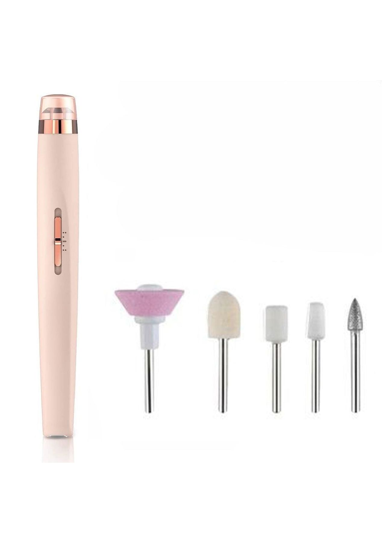 5 IN 1 Electric Nail Drill Kit Full Manicure and Pedicure Tool - USB Rechargeable - Pink