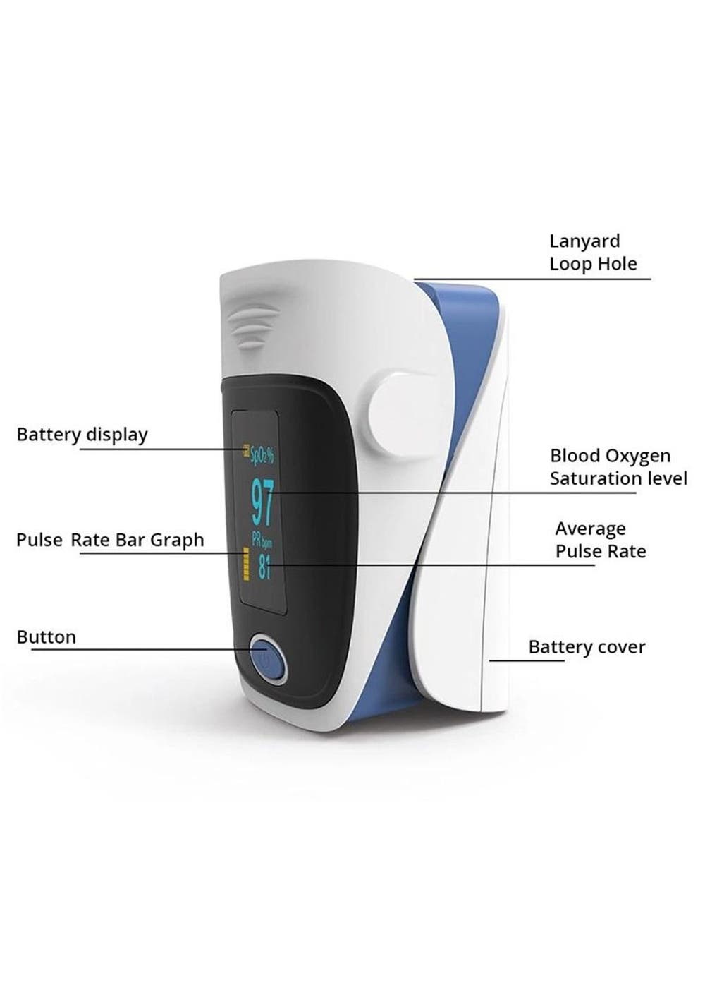 Features£ºBring home the ultimate healthcare tool that allows you to easily keep track of your oxygen concentration levels and heart rate before, during or after exercise. Widely used by hospital nurses, sports physicians and paramedics, now you can manage family members breathing conditions and attend to your child s Asthma requirements.Designed for practicality, accuracy and your convenience, this intuitive design is easy to use and carry around to your kids weekend sports activities, or to your gym sessions, or even to visit grandparents at the age centre.Comes in 5 different colours, get yours today and always have this handy device on hand!Specifications:¡¤?Finger Heart Rate Monitor and Pulse Oximeter¡¤?The lifesaving device used by paramedics!¡¤?Widely used in hospital, home healthcare, oxygen bar, community medical centre, alpine area, sports healthcare etc¡¤?Compact, portable and lightweight, convenient to carry¡¤?Reliable accuracy and durability¡¤?Low voltage indicator¡¤?Real-time spot-checks¡¤?Low power consumption¡¤?Automatic power off when no signalSpecifications:¡¤?Dimension:?o?130(L) ¡Á 100(W) ¡Á60(H) mm¡¤?Display:o?OLED two colour displayo?Measurement range: 70¡«99%¡¤?SpO2:o?Resolution: ¡À1%o?Accuracy: ¡À2% (70%¡«99%), unspecifiedo?Measurement range: 30¡«240 bpm¡¤?Pulse Rate:o?Resolution: ¡À1%o?Accuracy: ¡À2bpm or ¡À2% (select larger)o?Low Perfusion ¡Ü0.4%¡¤?Power:o?1.5V (AAA size)o?Alkaline battery x 2o?Automatically power off when no signal in the oximeter for more than 8 seconds¡¤?Colour Options:?Pink, Purple, Green, Blue, Grey¡¤?Package Contents:o?1 x Fingertip Oximetero?1 x Lanyardo?1 x User manual