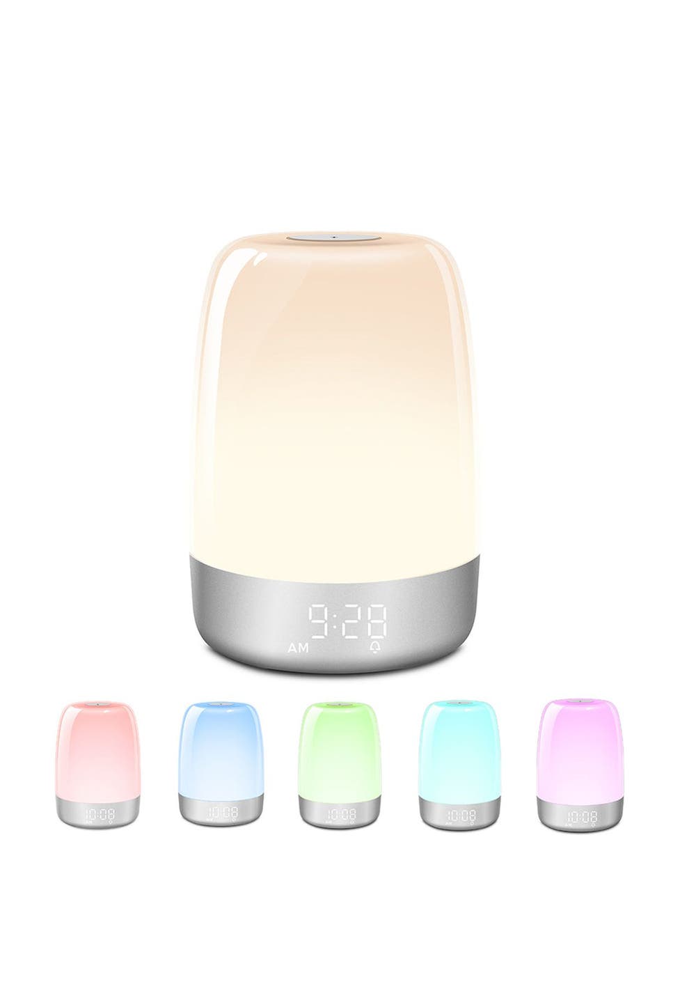 Product Description: Modern Design with Touch Control Night Lamp:?The modern design of the nursery night light can match various decorations and make your room more fashionable. It has touch control that provides easy and simple operation that offers you comfort especially at night. You can lightly touch the top of the lamp to turn on the light. You will not stumble or be hurt in the darkroom. The fingerprint is not easily visible on the surface, even if you always touch the light.RGB LED Table Lamp:?This night lamp emits a variety of light colors, primarily RGB ones, which?allows you to set colors from multiple options (red, blue, green, purple, sky blue, and warm light mode). You can create an interesting and romantic atmosphere to suit your mood. It is perfect for parties with friends, playing with your children, or for a date with your loved ones.Sunrise Alarm Clock and Sleep Mode:?create schedules with the built-in timer (10/30/60 minutes) to turn the alarm clock night light on / off automatically. It is the best tool to accompany you or your children to sleep at night. The alarm clock lamp wakes you up at a specific time by setting an alarm. This offers you more comfort for your routine. 5 different natural sounds are available so you can set your alarm sound according to your preference. Making it feel like you are in the peace of nature.Dimmable Ambient Light: The lamp supports a touch control function which?gives you 3 different levels of warm light brightness. Just tap?it?gently, creating the ideal environment to meet your needs for different purposes, such as the brightest mode for reading, the relaxing mode for sleeping. The gradient effect lighting is good for your eyes?and helps induce sleeping.?Product Specification:Color:?WhiteMaterial:?ABS, PCSize:?106 x 151mmWeight:?300gFunctions:?Night Lamp Voltage: ¬°√ú36V (V)Working Temperature: -10C to 50CLightning Power: 3WAdapter Output: 5V/1AWake-up Input: DC5V/1A?Package Inclusion:1 * Bedside Night Lamp1 * USB Cable1 * User Manual