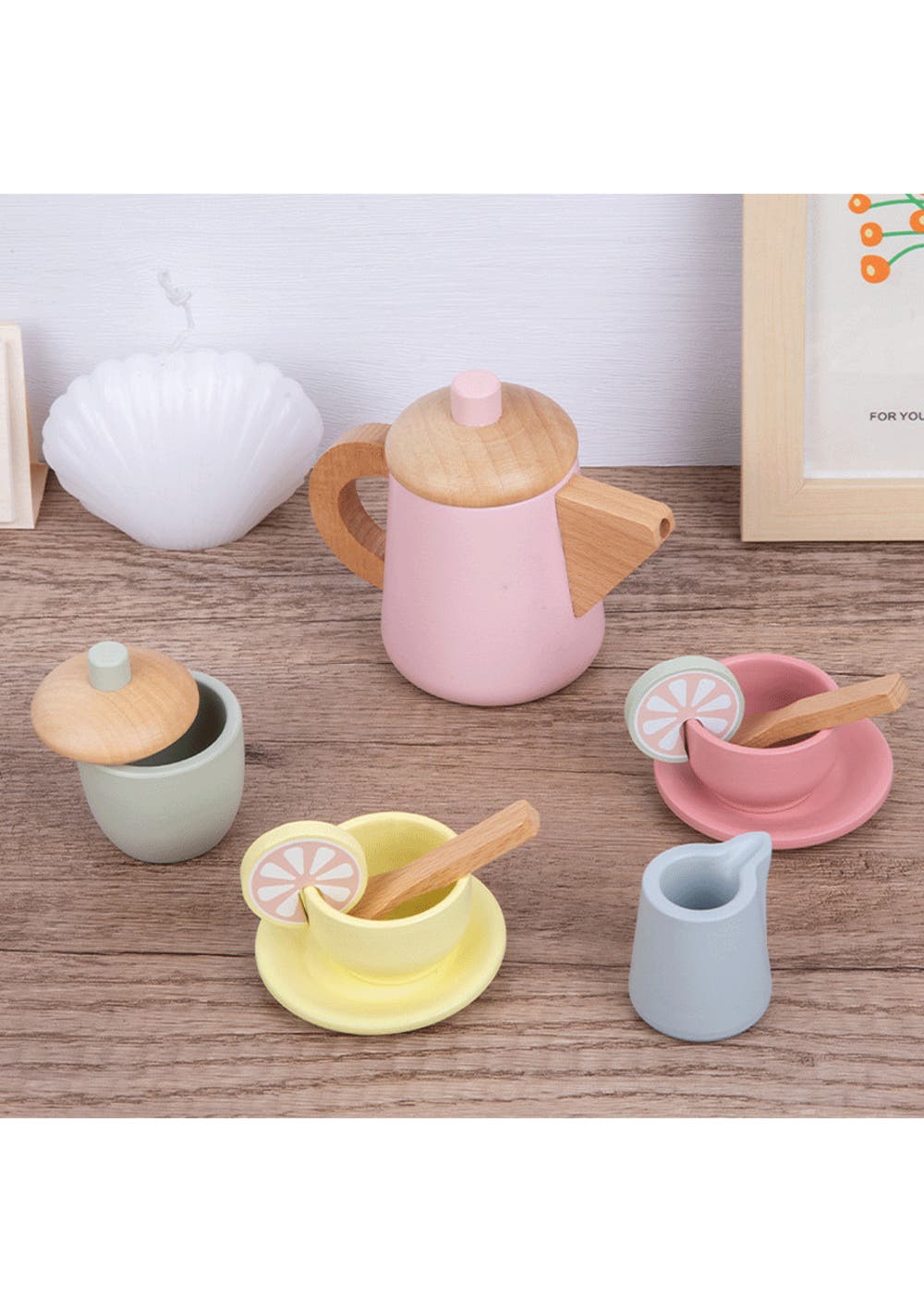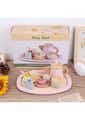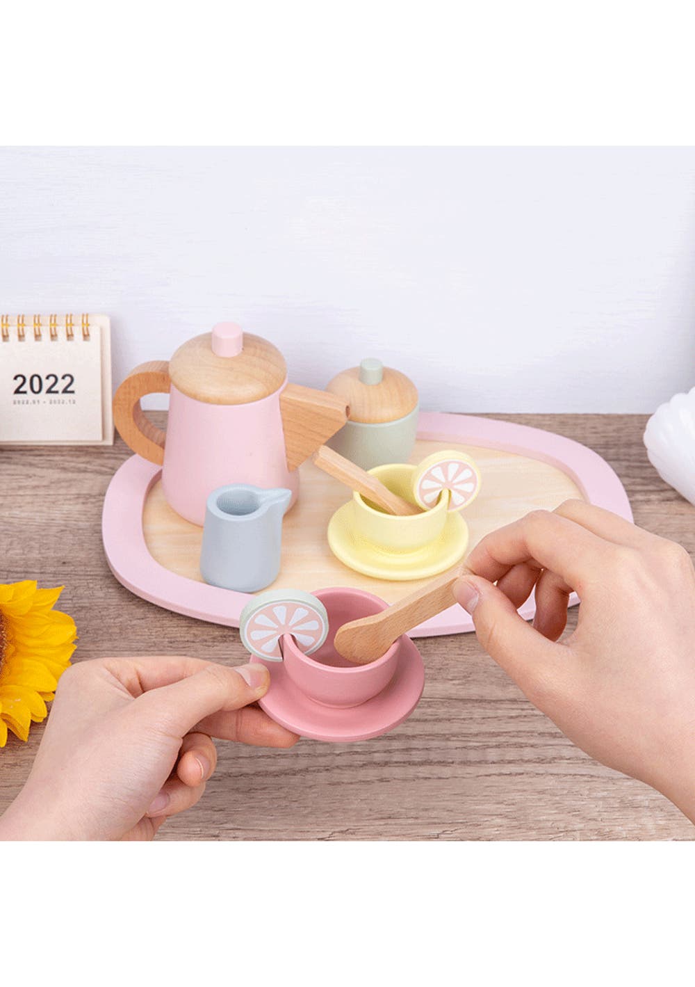 12 Pcs Wooden Tea Cup Saucers Spoons Tray Set