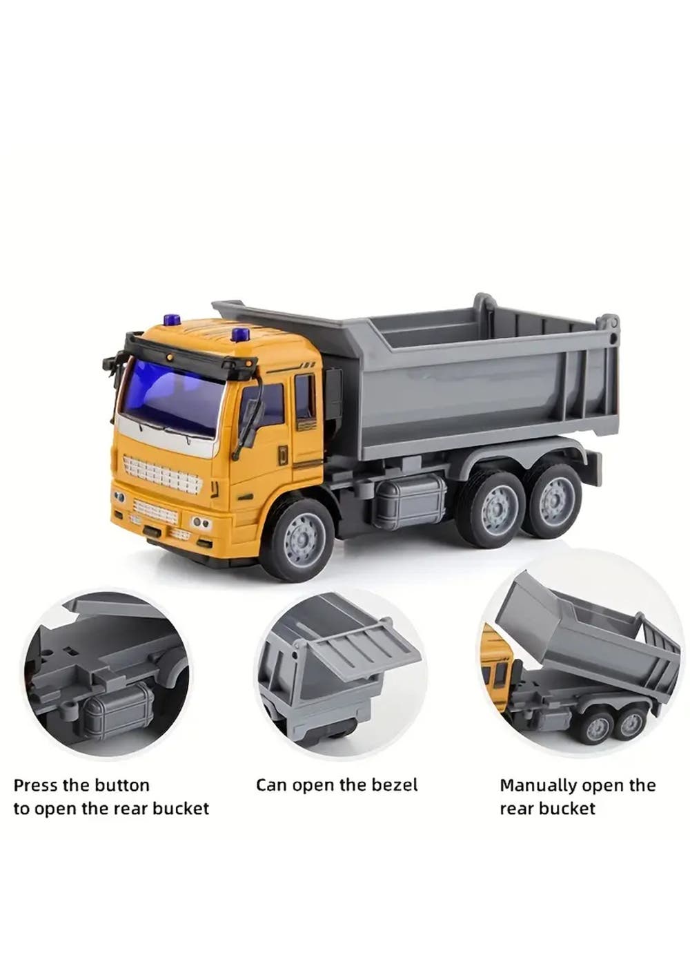 RC 4-Channel Dump Truck Toy<br>Material: Plastic <br>Product Dimensions (LWH): 20×9×10cm<br> Package Dimensions (LWH): 12.5x12.5x30 cm <br>Weight: 450g<br>Delightful Features for Endless Fun:<br>Unveil the joy of interactive play with our RC 4-Channel Dump Truck Toy<br> Versatile Joy: This remote-controlled Dump Truck isn't just a toy; it doubles as a charming decorative piece for any child's room, showcasing its utility and appeal.<br> Intricate Craftsmanship: With its mini construction truck design, the toy features meticulous attention to detail, boasting an impressive level of realism that captivates and inspires.<br> Vivid Hues: Dressed in an array of bright colors, this hefty model toy car is an eye-catching addition to any playtime, guaranteed to bring a burst of joy to your child's day.<br> Durable Build: Constructed from robust plastic, this Dump Truck model is designed to endure, resisting drops and collisions for lasting entertainment.<br> The Ideal Present: Looking for a special gift? This oversized crane toy is the perfect present for holidays and birthdays, sure to be an instant favorite.<br>Easy to Operate:<br>Simply install the battery, and it's ready to go.<br>Specifications for Enhanced Experience:<br>• Appropriate Age: Suitable for children above 3 years old.<br>• Battery Life: Comes with a 3.7V 500mAh lithium battery for the body, while the remote control requires 2 x AA batteries (not included).<br>• Scale: The model is built to a 1:30 scale, striking the perfect balance between size and manageability.<br>Package Includes:<br>• 1 x Dump Truck<br>• 1 x Remote Control<br>• 1 x Matching Battery<br>• 1 x USB Charger Cable<br>
